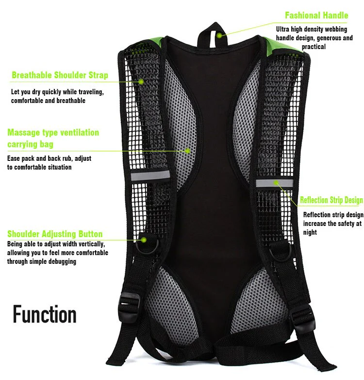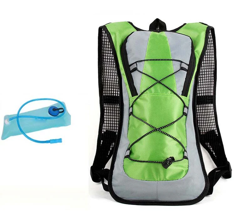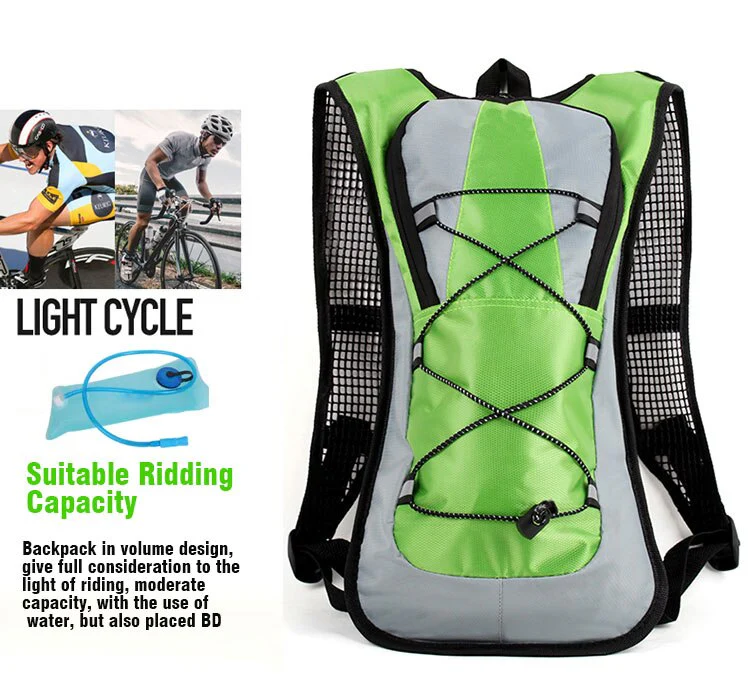 The outer shell is designed to repel water and keeps your stuff dry. Your 2L bladder attaches firmly to the top of the pack to spread out the weight and keep it high on your shoulders. Won’t put pressure on your lower back.