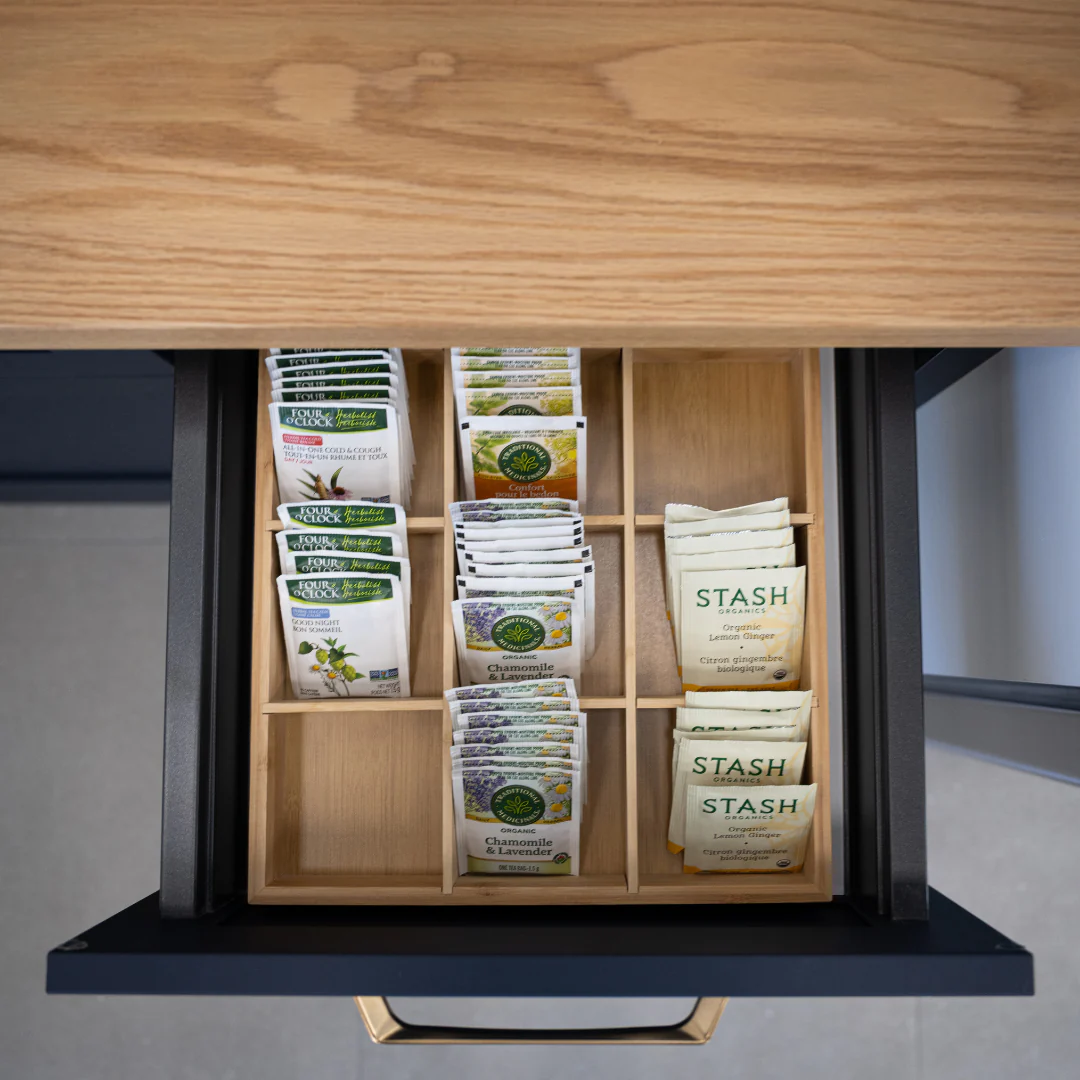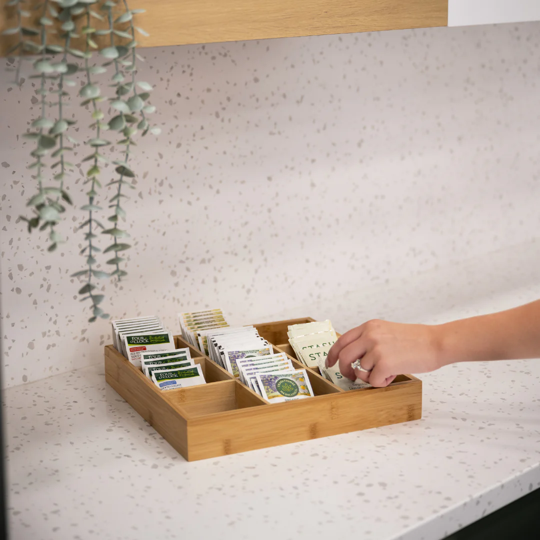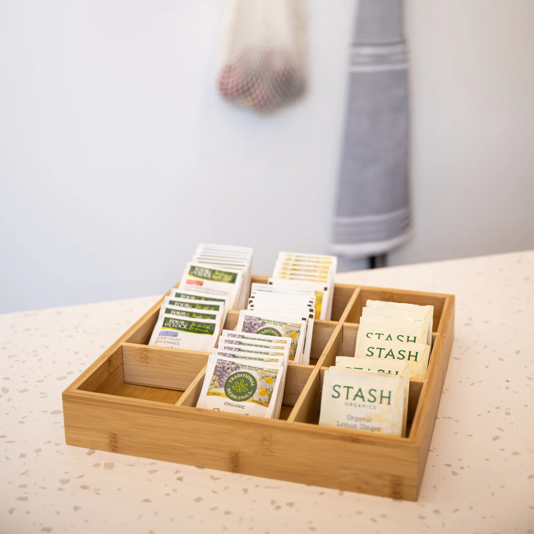 Ce bac de rangement en bambou est conçu pour offrir une solution de rangement pratique et élégante. Avec ses neuf compartiments, il permet d’organiser efficacement vos petits accessoires de bureau, sachets de thé ou autres objets de petite taille. Sa conception durable en bambou ajoute une touche naturelle et esthétique à votre espace tout en assurant une longévité exceptionnelle.
