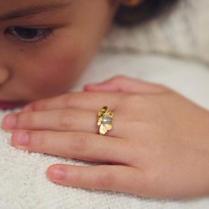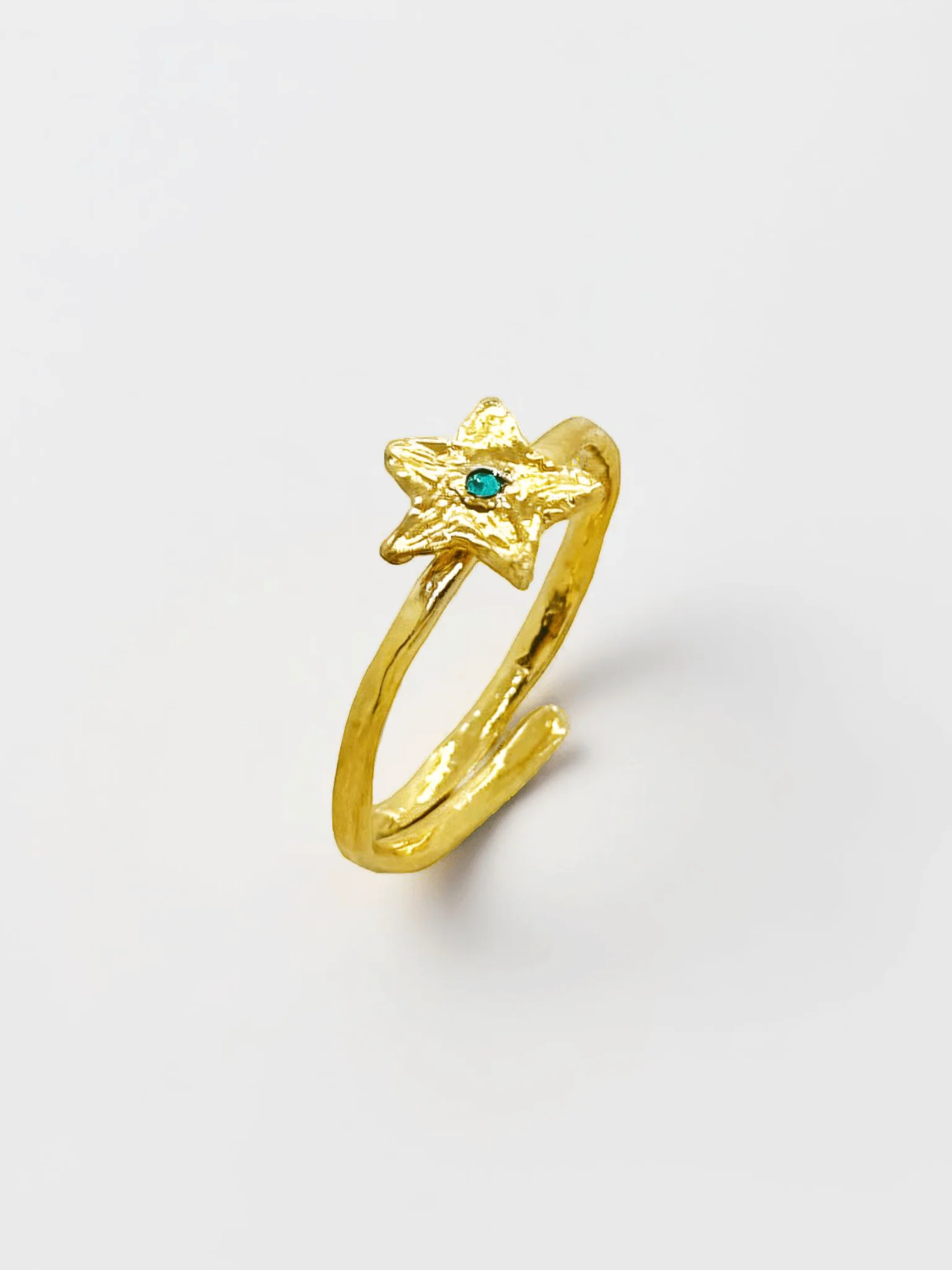 La bague Dilley, fabriquée à Paris, incarne la délicatesse avec son étoile dorée finement texturée et sublimée par un cristal étincelant. un symbole de lumière et de poésie, parfait pour accompagner vos plus beaux moments.