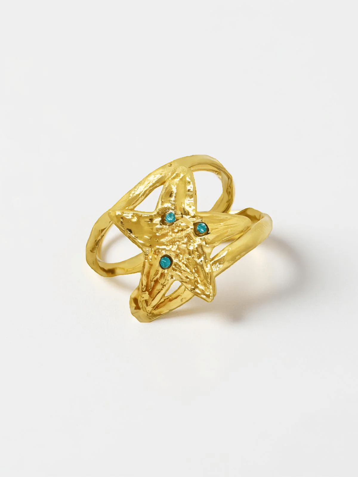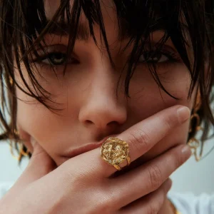 La bague Killeen, fabriqué à Paris, séduit par son étoile dorée sculptée et ornée de cristaux scintillants. Aux airs de chevalière, cette bague ajustable audacieuse captera la lumière avec éclat.