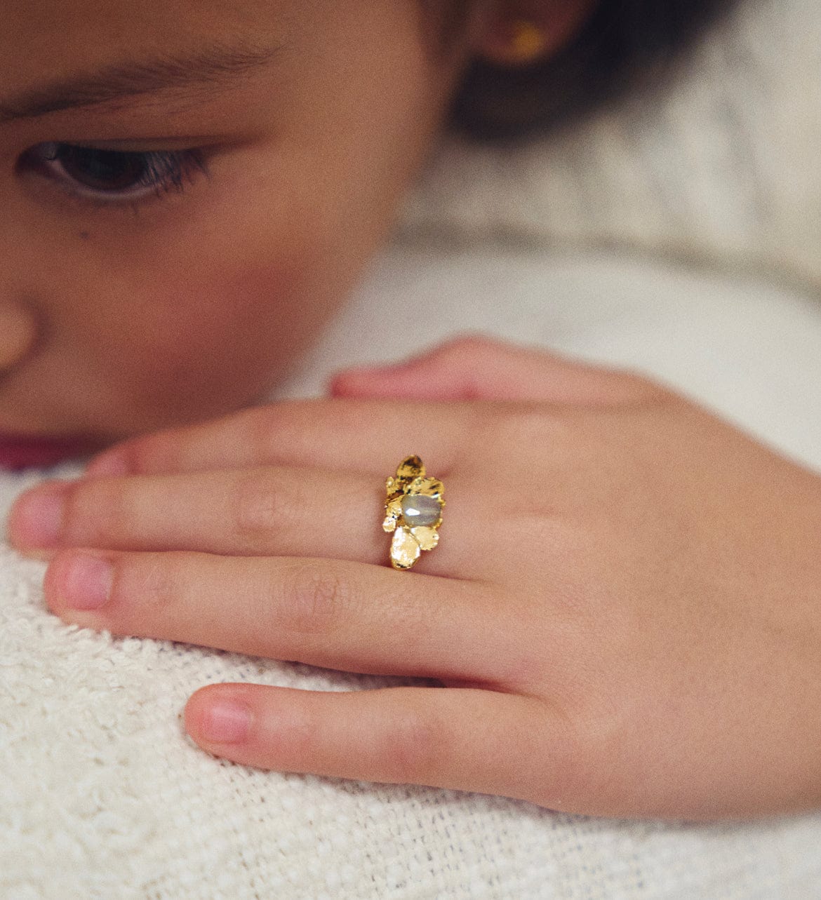 Nos bagues enfant en or recyclé 24 carats sont conçues pour offrir un premier bijou précieux et intemporel. Créées en petites séries dans notre atelier parisien, elles marient délicatesse du design, savoir-faire artisanal et engagement éthique. Idéales pour un cadeau unique ou un souvenir précieux, elles accompagnent avec poésie les jeunes années.
