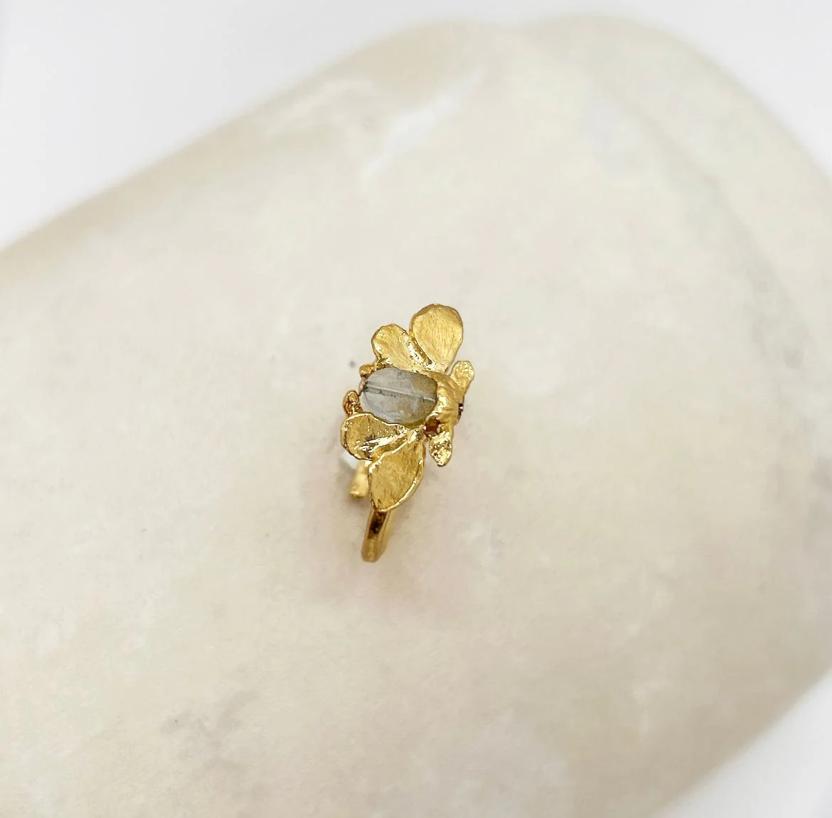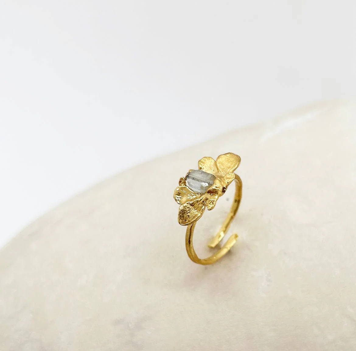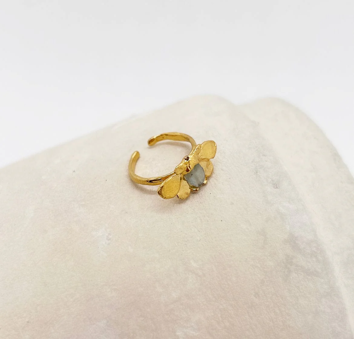 - Dorure qualitative, éthique et responsable, or 24 carats, 3 microns, sur base laiton et pierre naturelle Aigue marine.