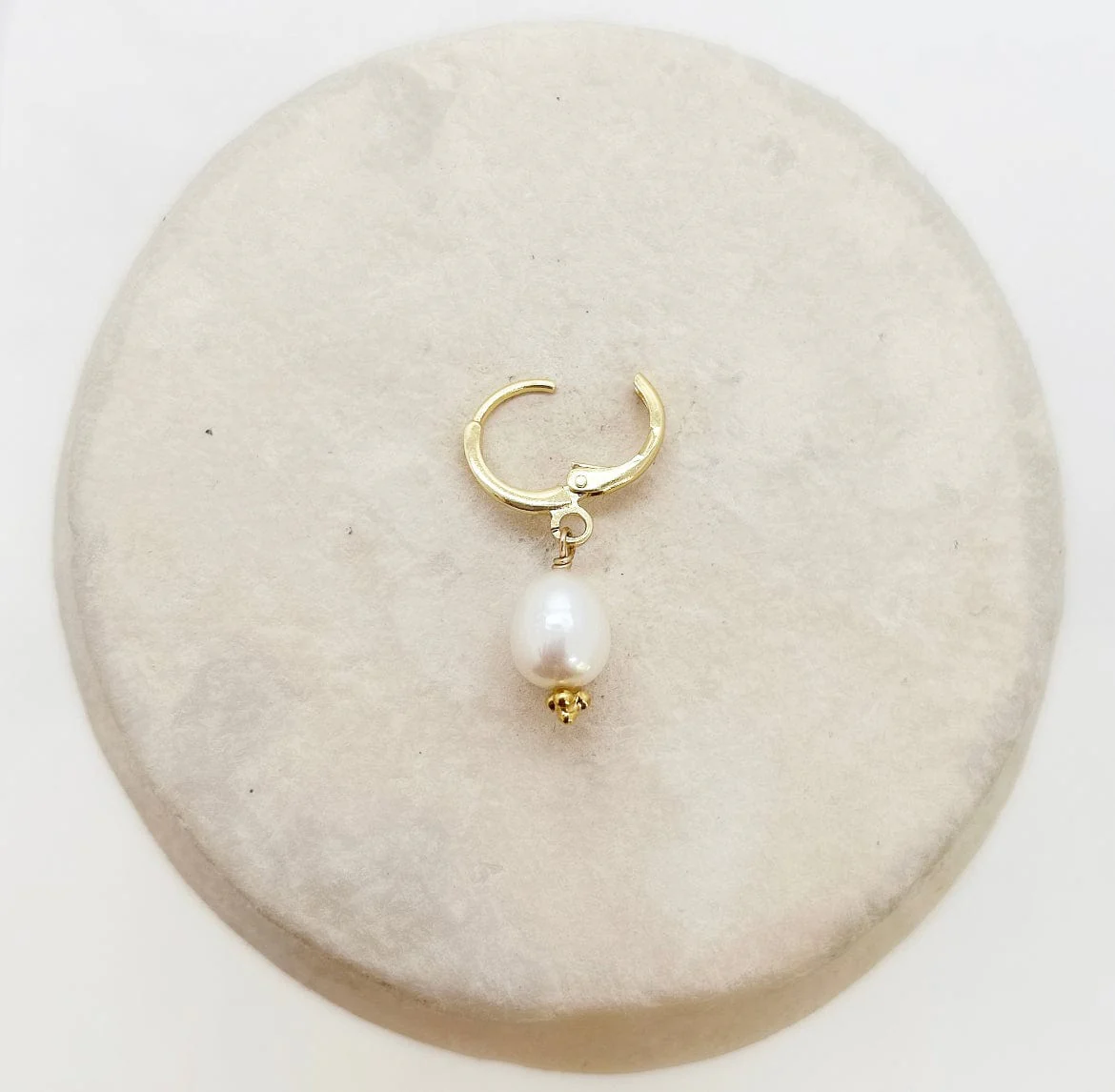 La mono-boucle créole pendante Amista est habillée d’une délicate perle d’eau douce. Une ligne poétique aux formes imparfaites. Portez-la seule ou jouez l’accumulation ! L’unique mot d’ordre étant, amusez-vous !