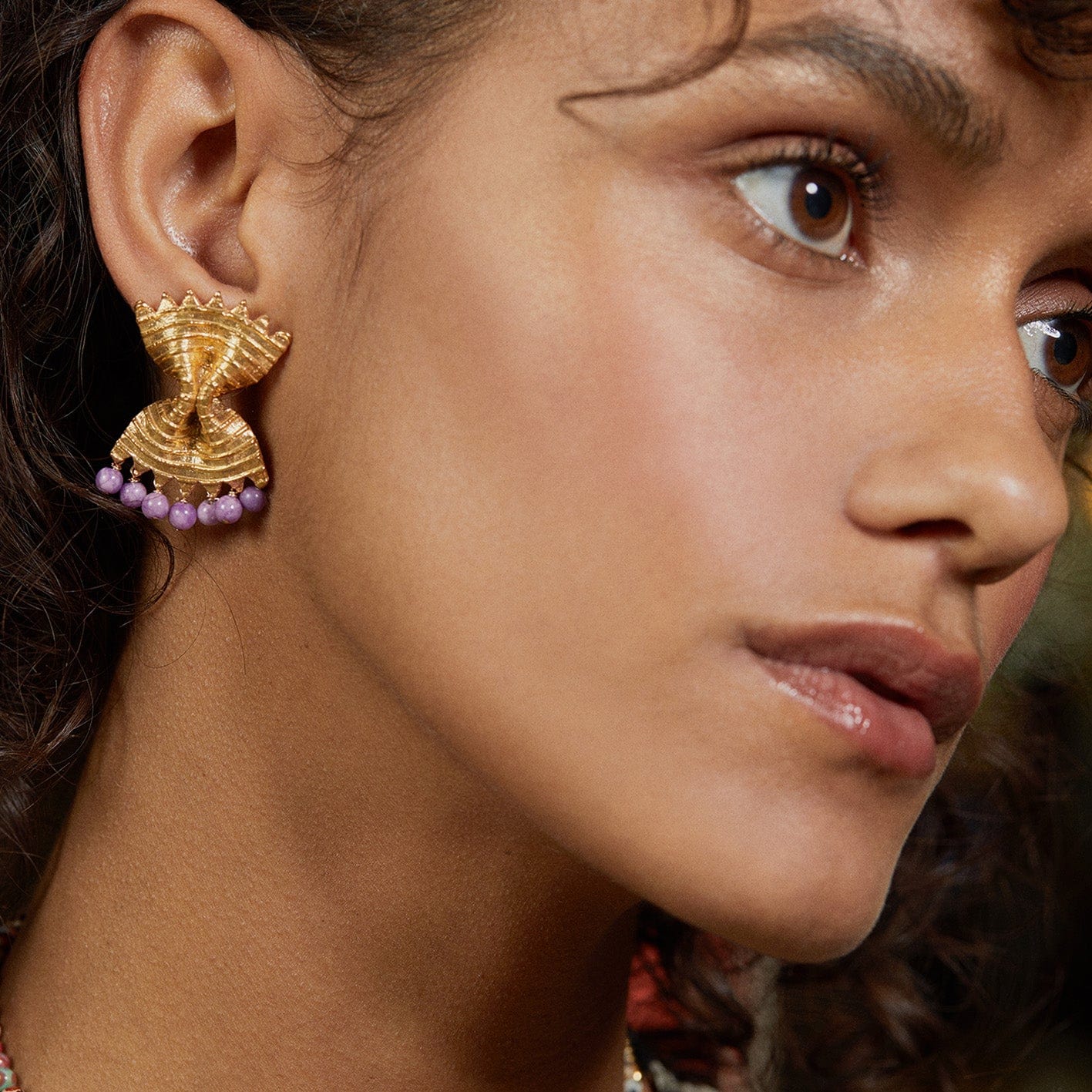 Boucles d’oreilles pour oreilles percées conçues à Paris. En forme des fameuses pâtes à l’italienne Farfalle, elles sublimeront vos tenues avec une touche italienne grâce à ces lignes contrastantes rehaussées d’une jolie couleur viollette de pierres de phosphosidérite. Elles seront gourmandes et imposantes pour votre quotidien et élégantes pour votre soirée hivernale.