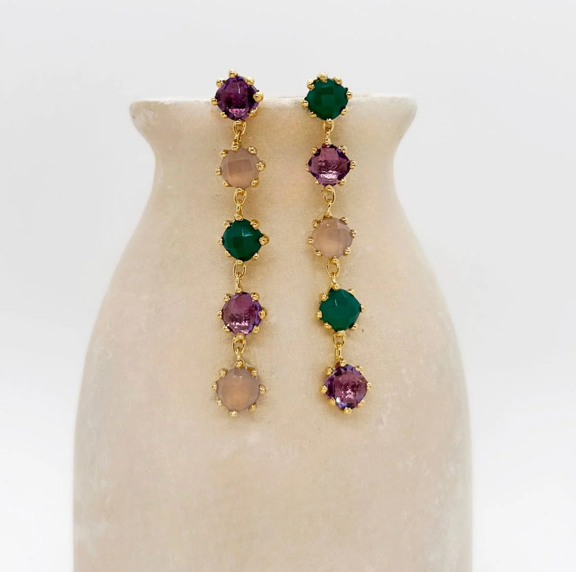Découvrez l’essence de l’élégance parisienne avec notre paire de boucles d’oreilles serties, magnifiquement ornées de pierres semi précieuses vertes, nudes, et mauves. Fabriquées avec soin dans le cœur de Paris, ces boucles d’oreilles incarnent le luxe et le raffinement artisanal. Chaque pierre est méticuleusement sélectionnée pour son éclat, puis sertie avec une précision exceptionnelle, créant un bijou qui capte et reflète la lumière de manière éblouissante.