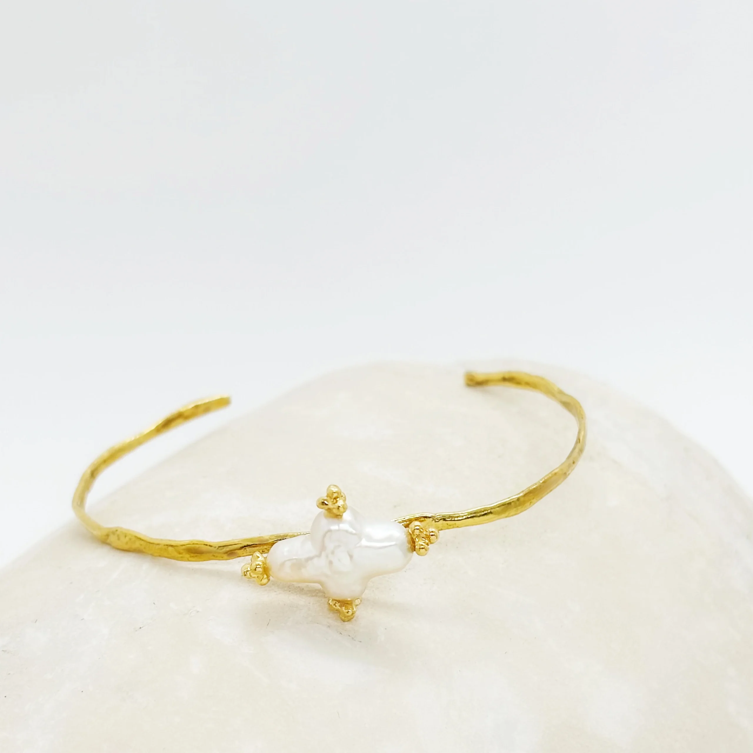 Évoquant l’élégance brute et la spiritualité, le jonc Chimère associe la douceur d’une perle de culture en forme de croix à la texture authentique d’une base martelée. Forgé avec soin dans nos ateliers parisiens, chaque pièce incarne l’artisanat raffiné et le charme intemporel. Un bijou à l’aura sacrée, révélant la force discrète de la tradition et la beauté subtile du fait main.