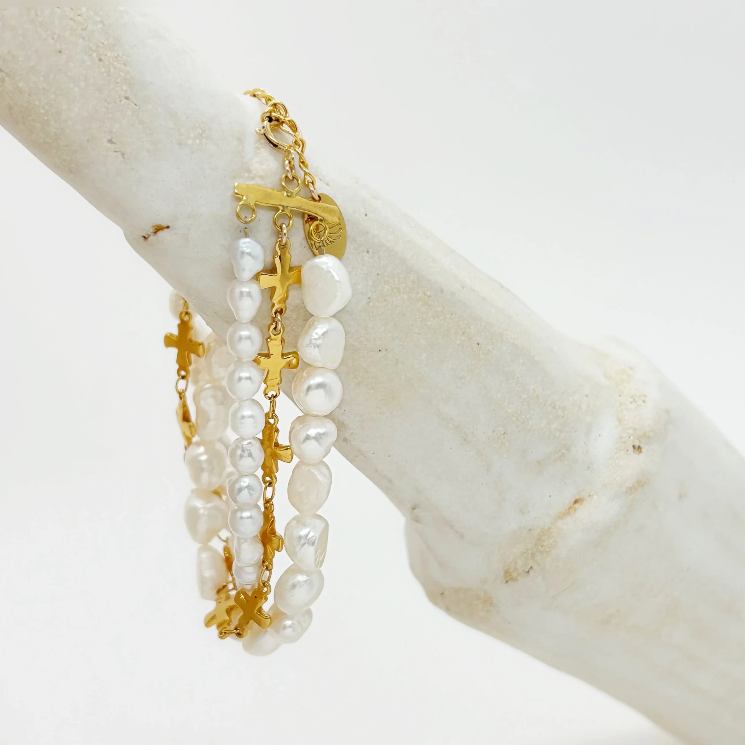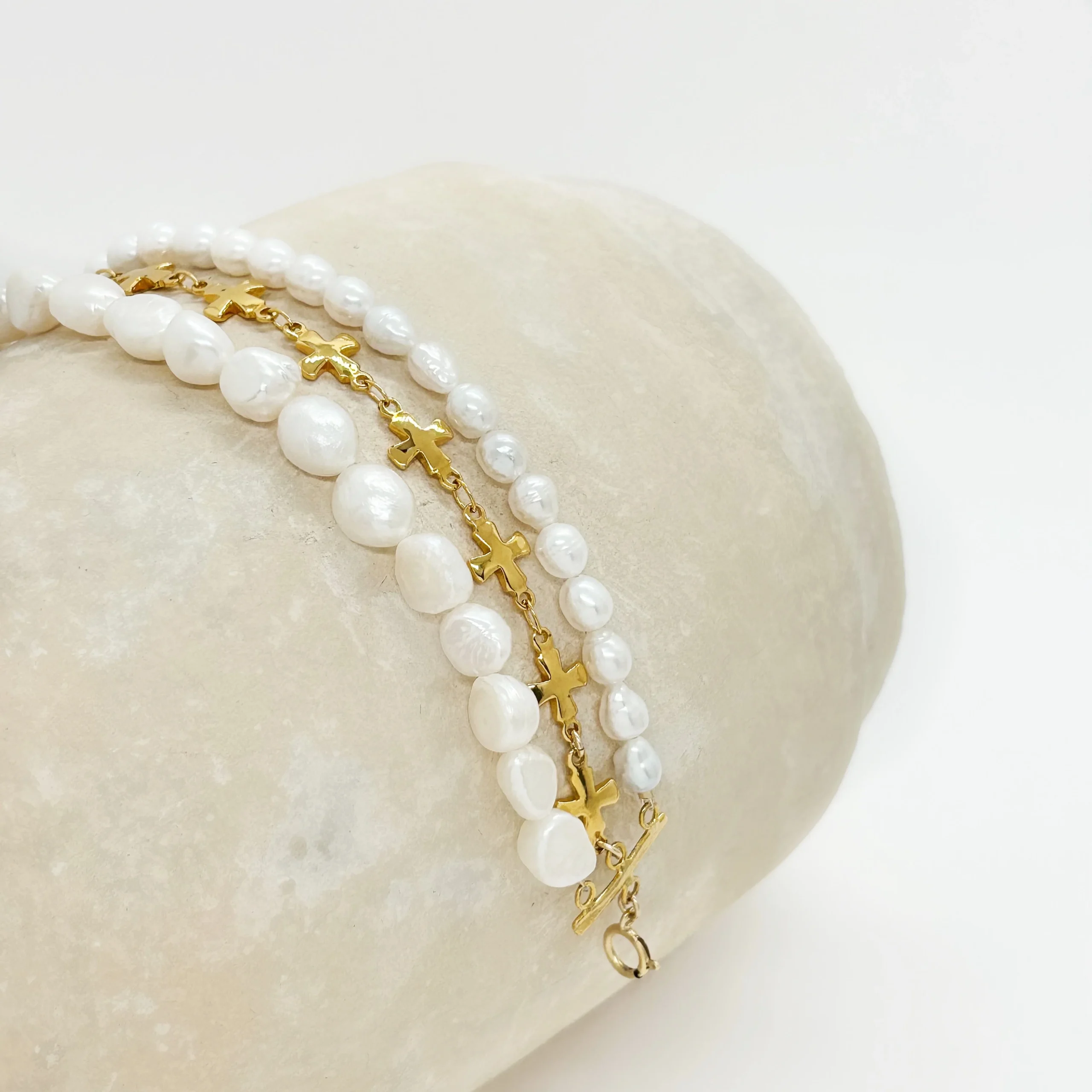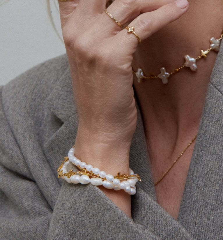 Hydrana est un bracelet unique, confectionné artisanalement dans nos ateliers parisiens, allie élégance et originalité. Composé de trois rangs, il présente deux rangs de perles de culture parfaitement harmonisés, tandis qu’un troisième rang est orné d’une délicate chaîne en croix, apportant une touche moderne et subtile. Chaque détail est minutieusement travaillé pour créer un équilibre raffiné entre la pureté des perles et la sophistication de la chaîne. Ce bijou d’exception, fin et élégant, incarne à merveille le savoir-faire artisanal et le charme intemporel du style parisien.