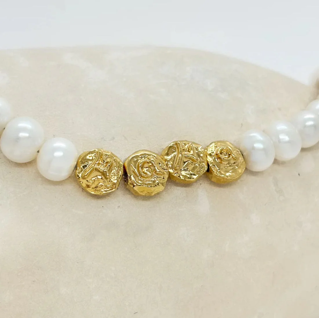 Fabriqué à la main en France, le bracelet Eros simple est orné de perles de culture.