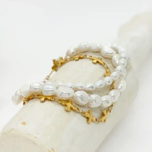 Tali est un délicat bracelet doré à l’or 24 carats sur 3 microns sur une base laiton, parsemées de breloques serties. Idéal pour se parer d’étoiles et avoir des rêves plein la tête.