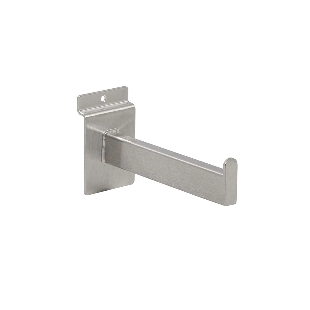 Bras droit en tube rectangulaire nickel satiné pour slatwall, 3 », 6 », 12 »