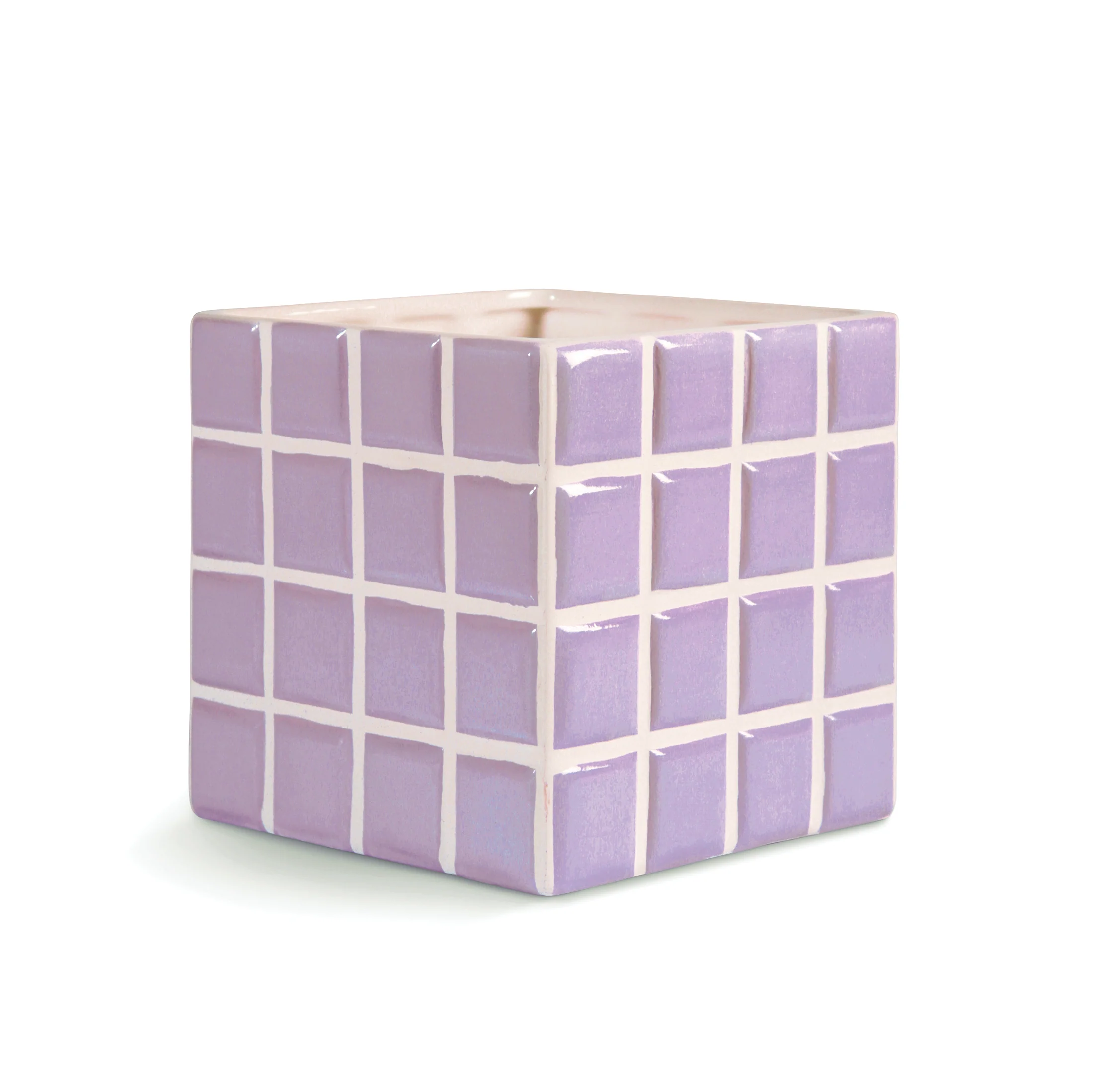 A chaque taille sa couleur chez &Klevering : le cache-pot « Tile » petit est disponible uniquement en orange et le moyen en lilas !