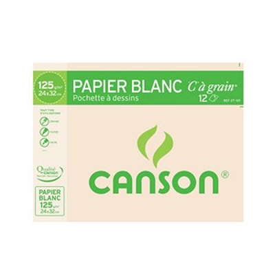 Le Pochette Papier à dessin blanc “C à Grain” 125g de CANSON est parfait pour pour l’apprentissage du dessin à l’école. On l’utilise principalement pour le dessin réalisé au crayon de papier, crayon de couleur ou feutre. Il est également idéal pour le travail à l’encre ou à la gouache. D’un blanc naturel, il dispose d’un côté à grain et d’un côté lisse. Il résiste aux gommages et aux grattages répétés sans pelucher.
