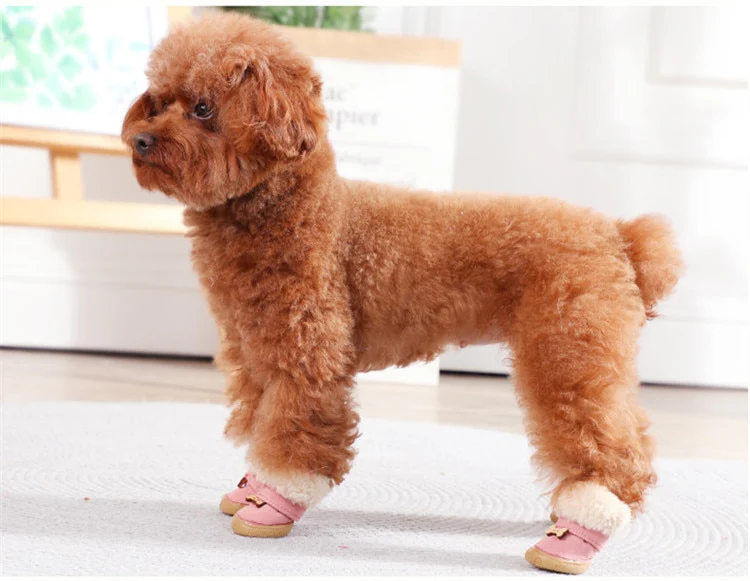 Features of the CHICDOG Thick Fur Dog Snow Boots Coffee / Pink / Purple
