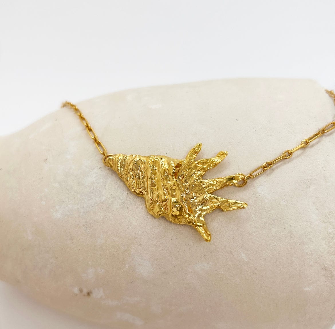Orné de son pendentif en forme de coquillage, le collier Ellaosi est composé d’une chaîne à mailles trombone réglable. Au style intemporel, il saura parfaitement capter la lumière et est idéal pour être portez avec une accumulation d’autres modèles.