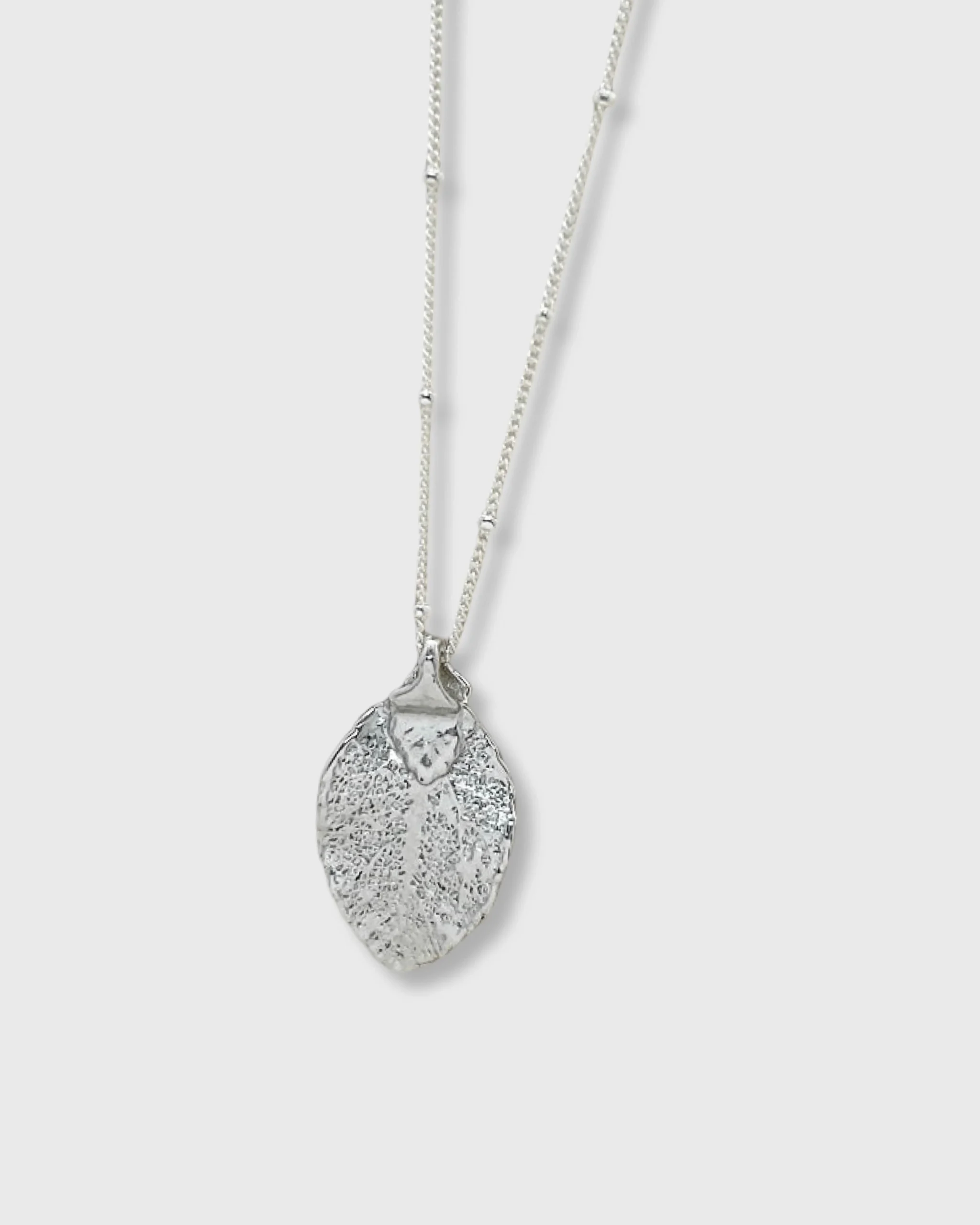 Réalisé dans notre atelier français, le collier Kiato est orné d’un pendentif en forme de feuille, d’une chaîne délicatement perlée et finalisé par un fermoir avec un anneau à ressort. Une pièce que l’on ne souhaite jamais retirer, garder près de soi, toujours !