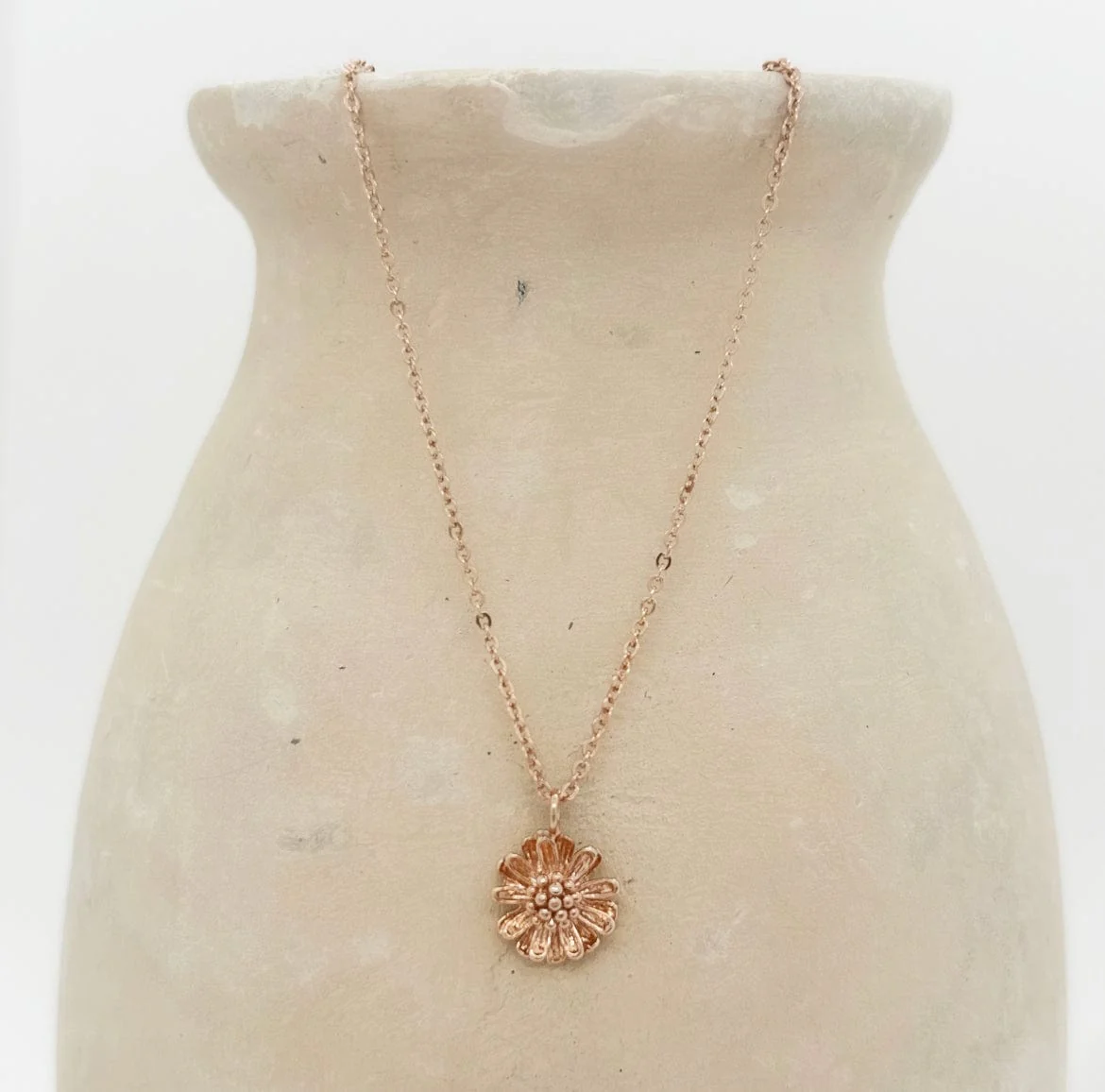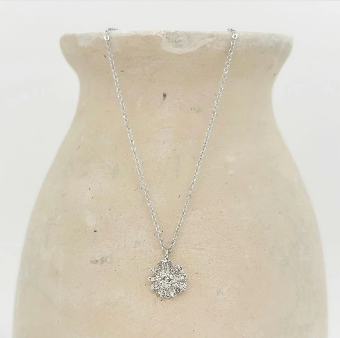 Un collier léger avec sa délicate chaîne à maille forçat et sa breloque fleuris