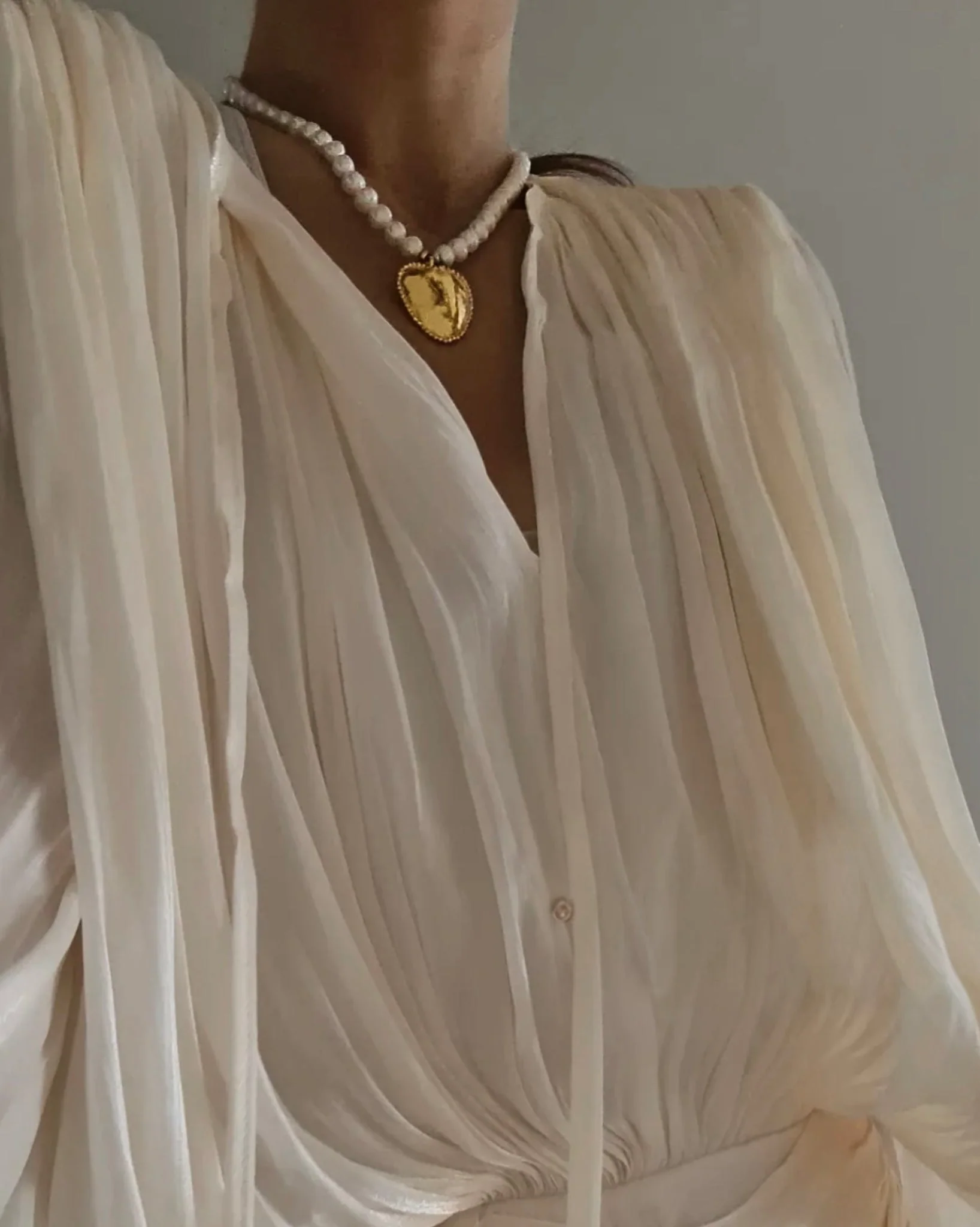 Le collier Nérée enchanteur allie la douceur des perles à l’audace d’un cœur doré, généreux et lumineux. Chaque élément est façonné à la main dans nos ateliers parisiens, révélant l’amour du détail et l’artisanat d’exception. Symbole de passion et de tendresse, ce bijou poétique et intemporel est conçu pour capturer l’éclat de chaque instant, tel un trésor précieux posé près du cœur.