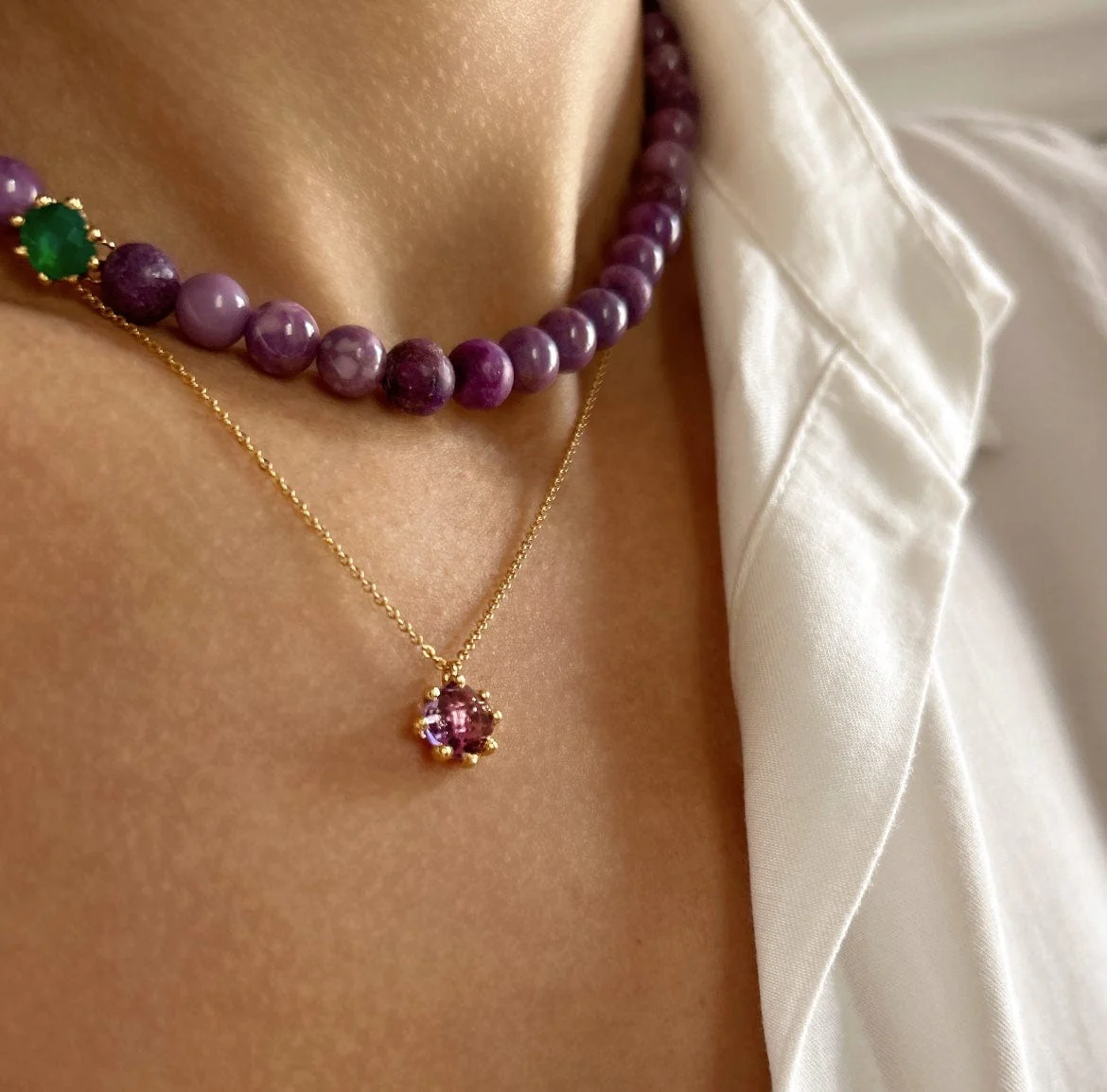 - Pierre mauve : Améthyste du Brésil naturelle.