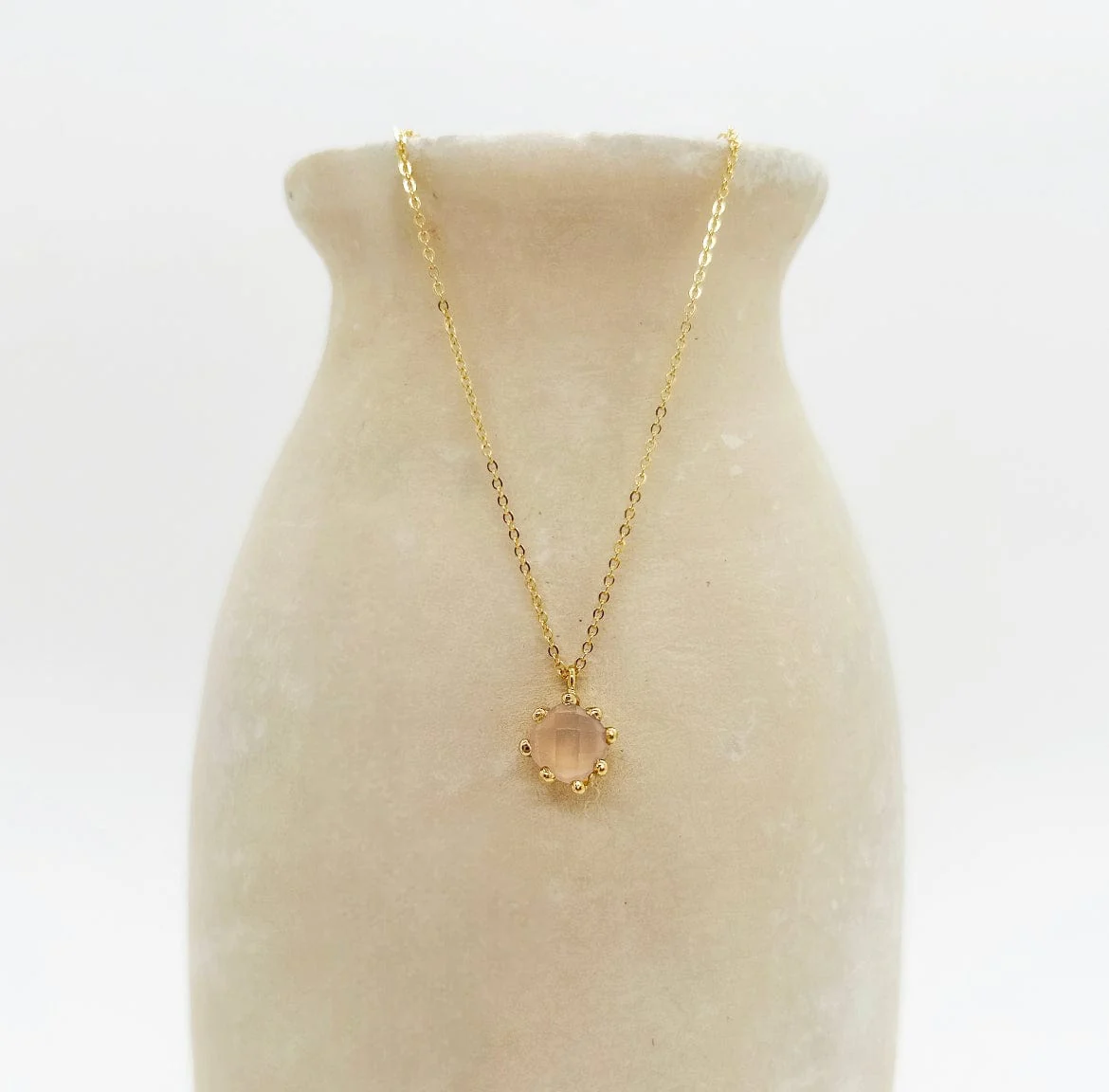 Calcédoine rose: Elle incarne la délicatesse et la pureté. Parfaite pour une élégance discrète, cette pierre aux teintes douces se marie harmonieusement avec toutes les tenues, du quotidien aux soirées raffinées.