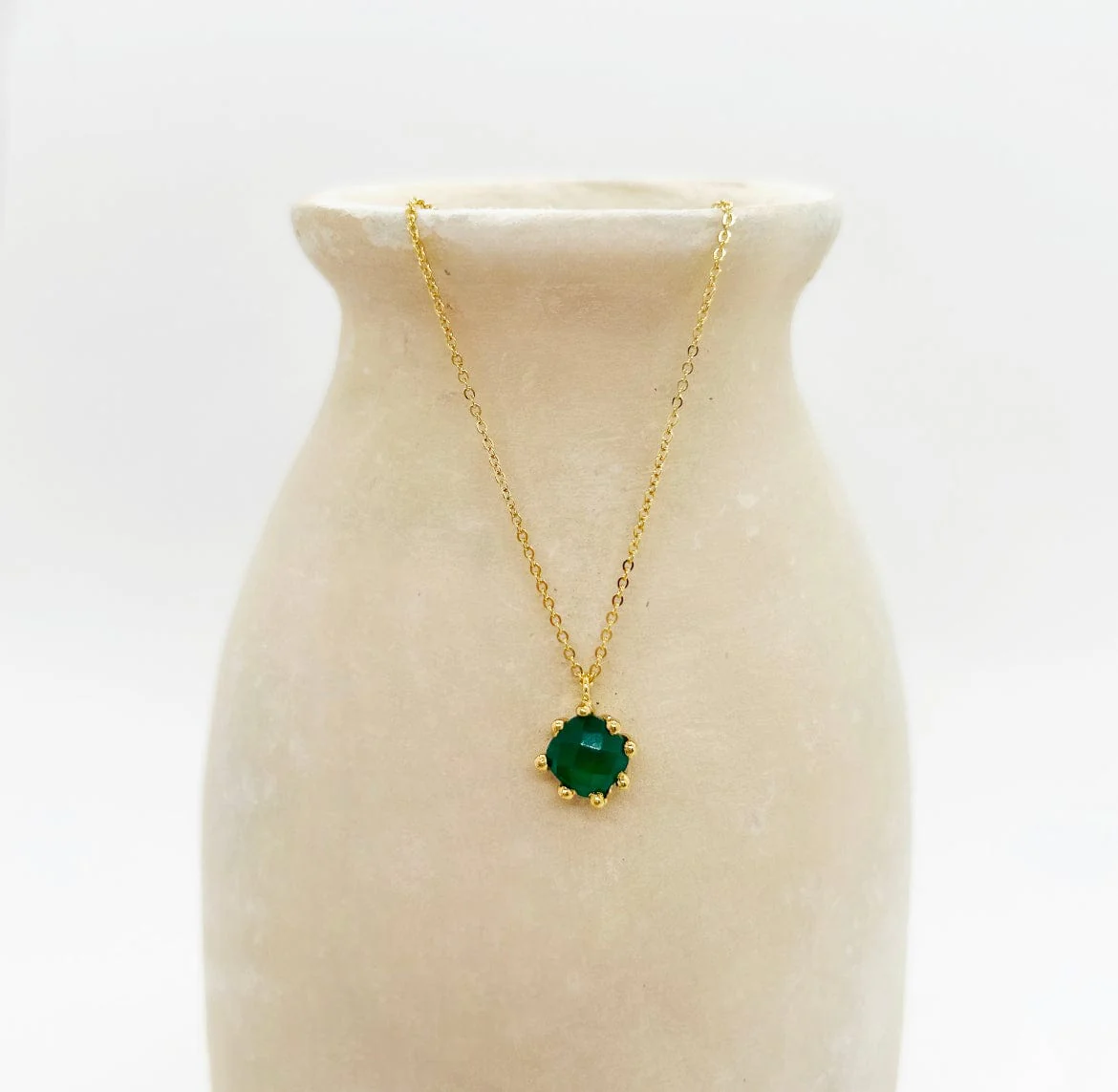 Onyx verte Laissez-vous envoûter par l’éclat enchanteur de cette pierre. Symbole de renouveau et d’énergie, cette pierre couleur émeraude capte la lumière avec une intensité captivante. Le sertissage minutieux met en valeur la profondeur de sa couleur.
