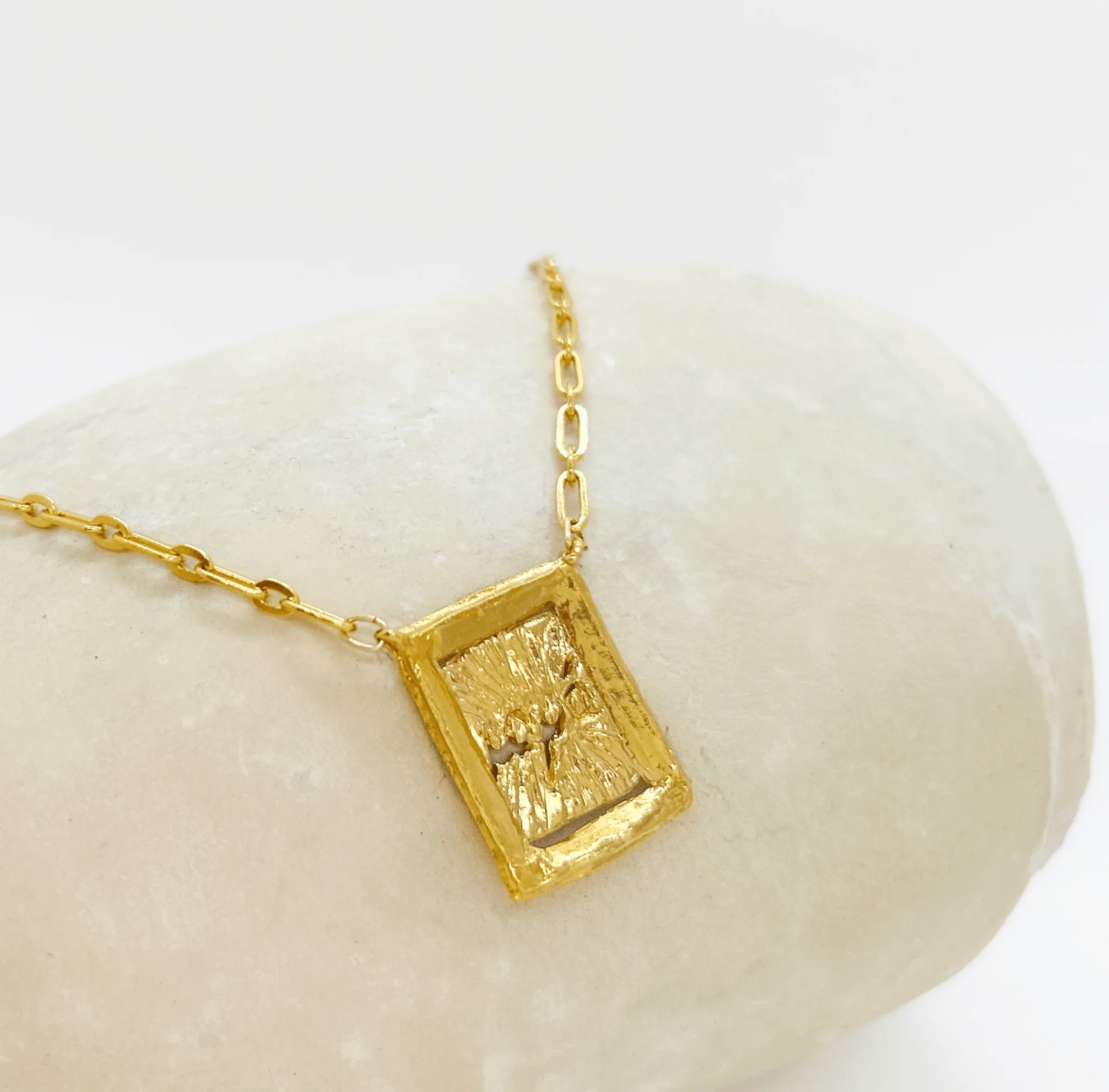 Prastia est un collier de caractère, avec sa chaîne à mailles trombone et sa breloque imposante. Gravée du mot grec YAYA, qui signifie MAMAN, cette pièce est le symbole d’un amour entre une mère et son enfant, le résultat d’une enfance heureuse, mariage de deux cultures. Un bijou emblématique au style ancien que vous aurez plaisir à transmettre.