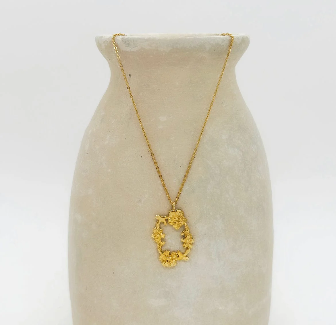 Le collier Psiana est composé d’un joli pendentif fleuri, il a été réalisé de façon artisanale dans notre atelier à Paris. Tel un ancien mouchoir aux broderies d’antan, elles habilleront et illumineront votre cou.