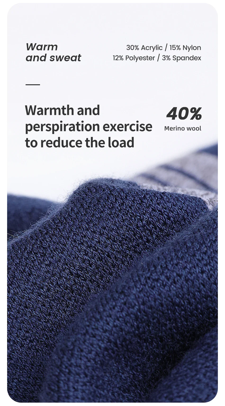 Material: 12% Polyester, 3% Spandex (40% Merino Wool)
