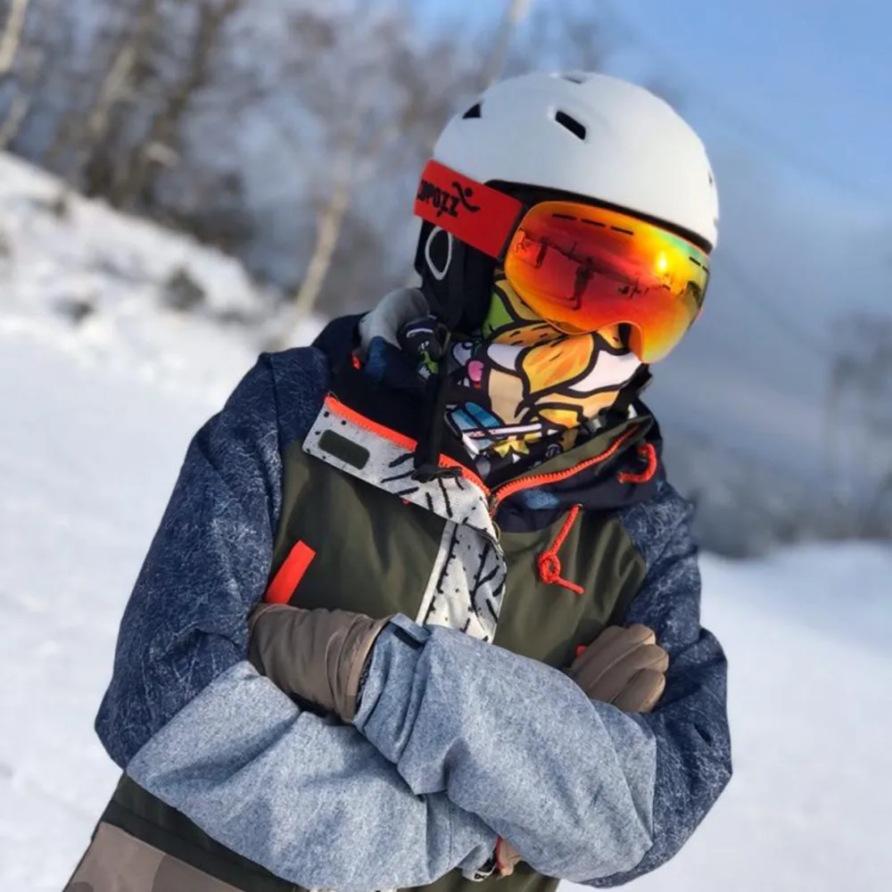 ⇨ you can easily mix and match this helmet with a kid’s ski suit. It’s available in white, black, pink, and camouflage on cheapsnowgear.com