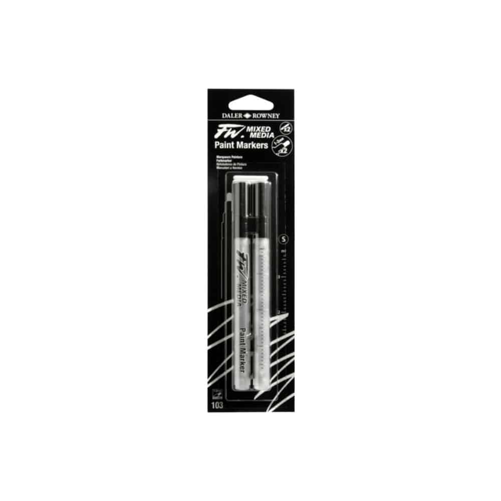 LesMarqueurs à peinture Daler-Rowney FW Mixed Media sont conçus pour être utilisés avec une large gamme de médiums liquides, notamment les encres acryliques, les aquarelles et les encres de dessin. Ils peuvent également être remplis d’eau pour servir de blender avec des crayons aquarellables. Chaque marqueur est doté d’un réservoir rechargeable de 3,6 ml et d’une pointe en fibre remplaçable, disponibles en plusieurs tailles pour s’adapter aux différentes techniques artistiques.