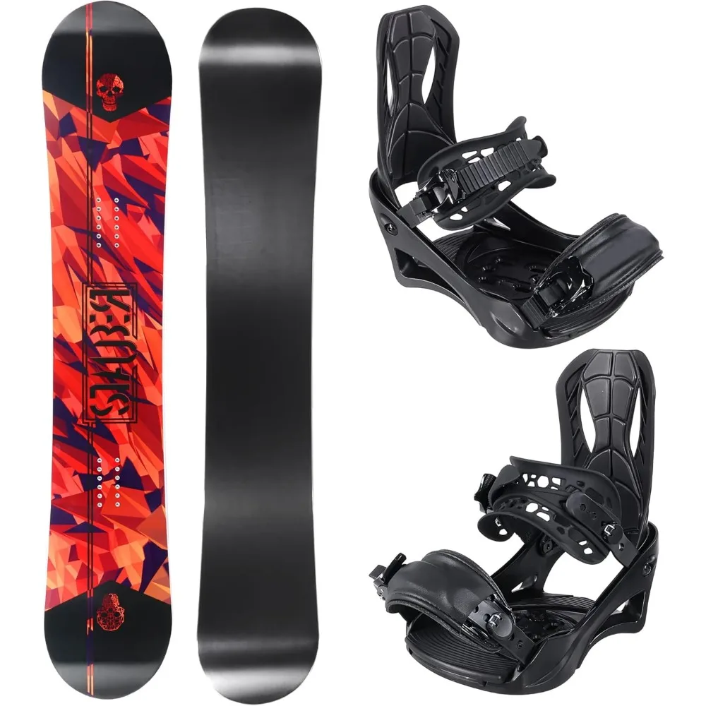 - All-Mountain Style Snowboard Set – Lightweight Rig with a Medium Flex – Durable Gloss Finished Top-Sheet Paired with Rigid Snowboard Bindings made of Injection Molded Polyethylene