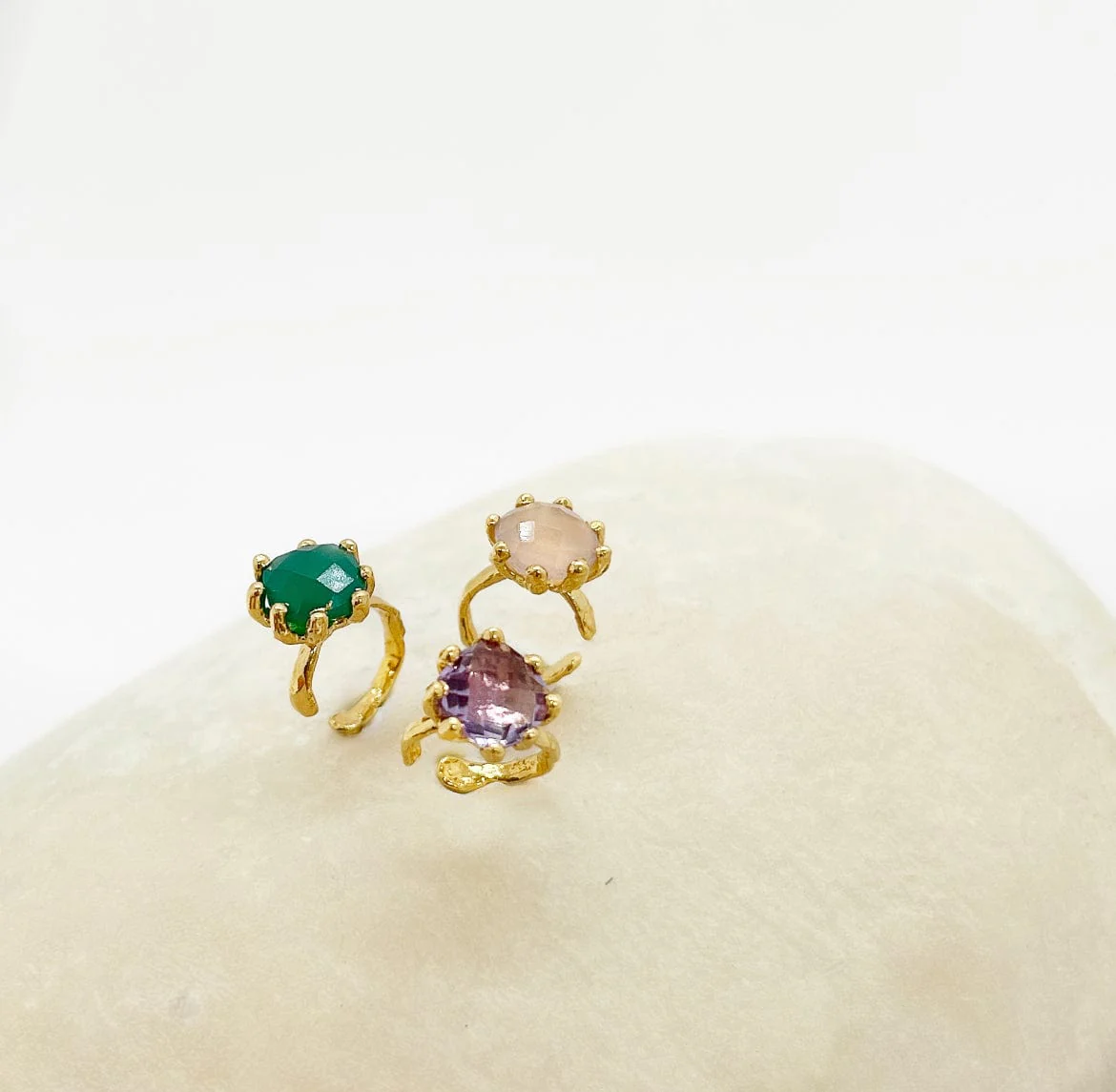 Calcédoine rose: Elle incarne la délicatesse et la pureté. Parfaite pour une élégance discrète, cette pierre aux teintes douces se marie harmonieusement avec toutes les tenues, du quotidien aux soirées raffinées.