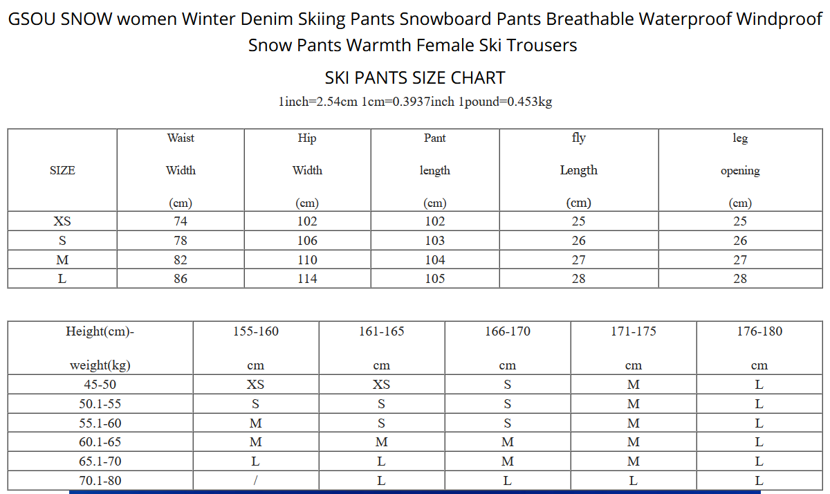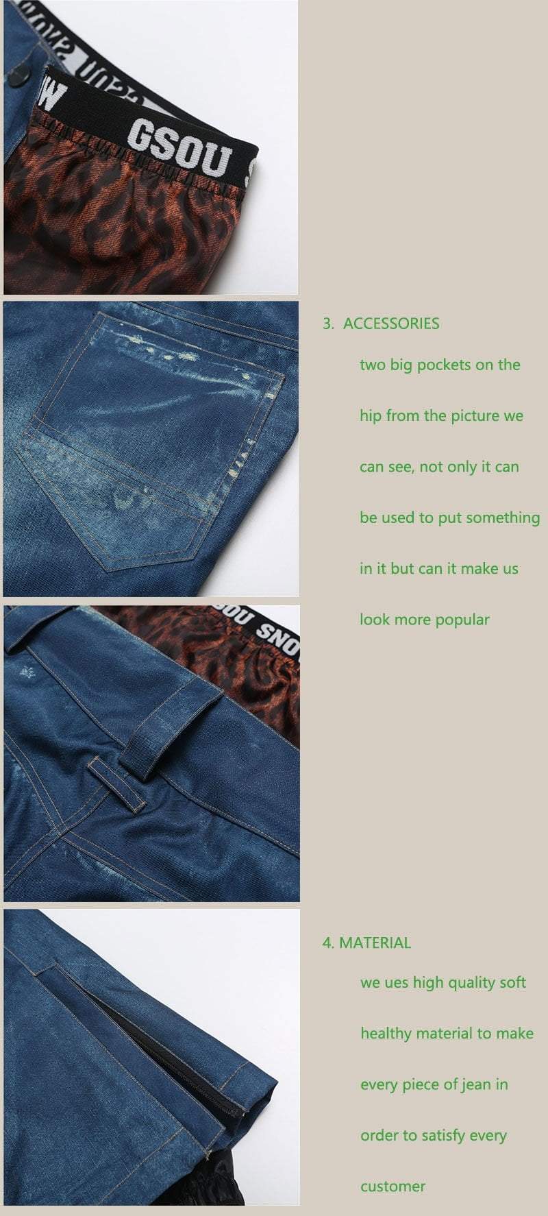 Features of the GSOU SNOW -30 Degree Sub Zero Denim Look Snowboard Pants