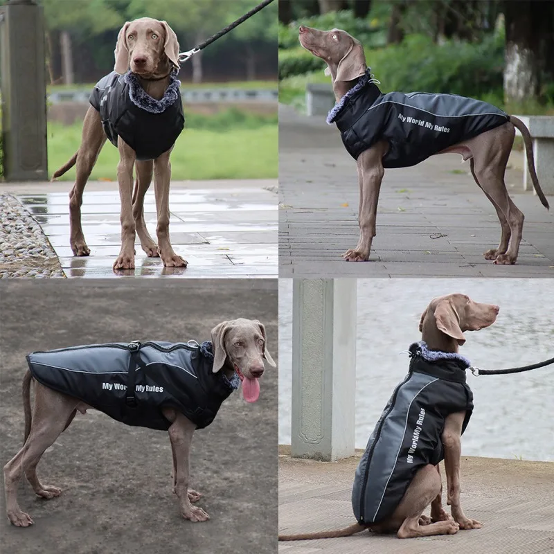 Thin and lightweight without losing its protection factor. Keeps wind and water out. Fleece lining stays dry to keep your dog warm.