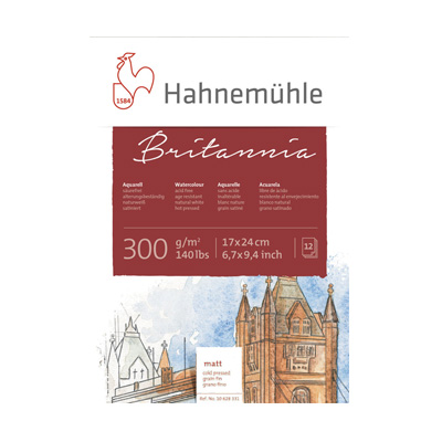 Le Bloc de papier Britannia grain fin 300g de Hahnemühle est un carton aquarelle fabriqué sans acides, avec réserve alcaline. Parfaitement résistant aux rayons-ultra-violets, il vieillit sans jaunir ni s’altérer. Sur ce carton aquarelle les couleurs s’appliquent aisément et les pigments conservent toute leur luminosité.
