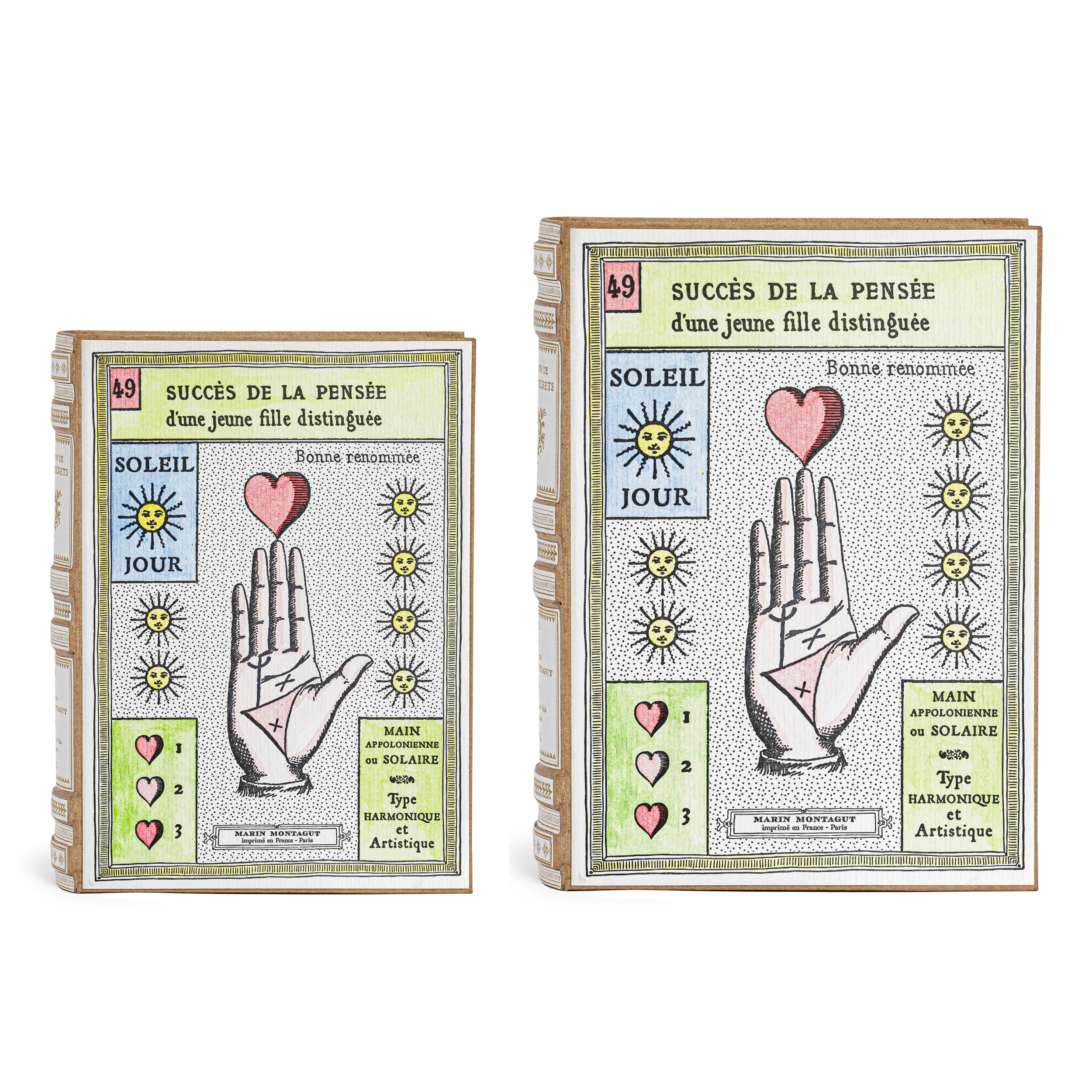 Inspirée de cette tradition, la collection “Livres À Secrets” créée en papier mâché est entièrement confectionnée, peinte et numérotée à la main dans les ateliers de Marin Montagut à Paris. L’intérieur est revêtu d’un papier marbré de reliure imprimé à la main en France et contient un ruban avec à son bout un colifichet en métal en forme de clé.