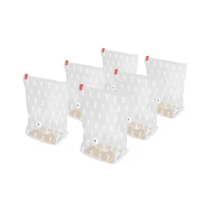 Le matériau transparent facilite l’identification du contenu en un coup d’œil. Les sacs sont fabriqués en PE (14 %), PET (83 %), silicone (3 %). Matières résistantes et réutilisables, conçues pour durer saison après saison. Dotés d’une valve universelle anti-fuite exclusive et d’un zip avec curseur sécurisé, les sacs empêchent tout regonflement. Le mode d’emploi est imprimé sur le sac pour un usage immédiat.