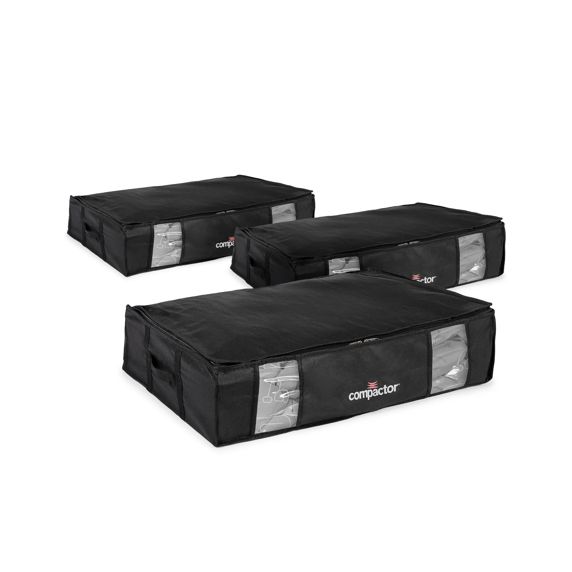 Optimisez vos rangements avec ce lot de 3 housses de rangement sous vide Compactor, la taille L (65 x 45 x H.15,5 cm) peut contenir l’équivalent d’une couette 2 personnes + une couette 1 personne. Idéales pour libérer de la place dans vos placards, elles sont parfaites pour faire le tri à chaque changement de saison.