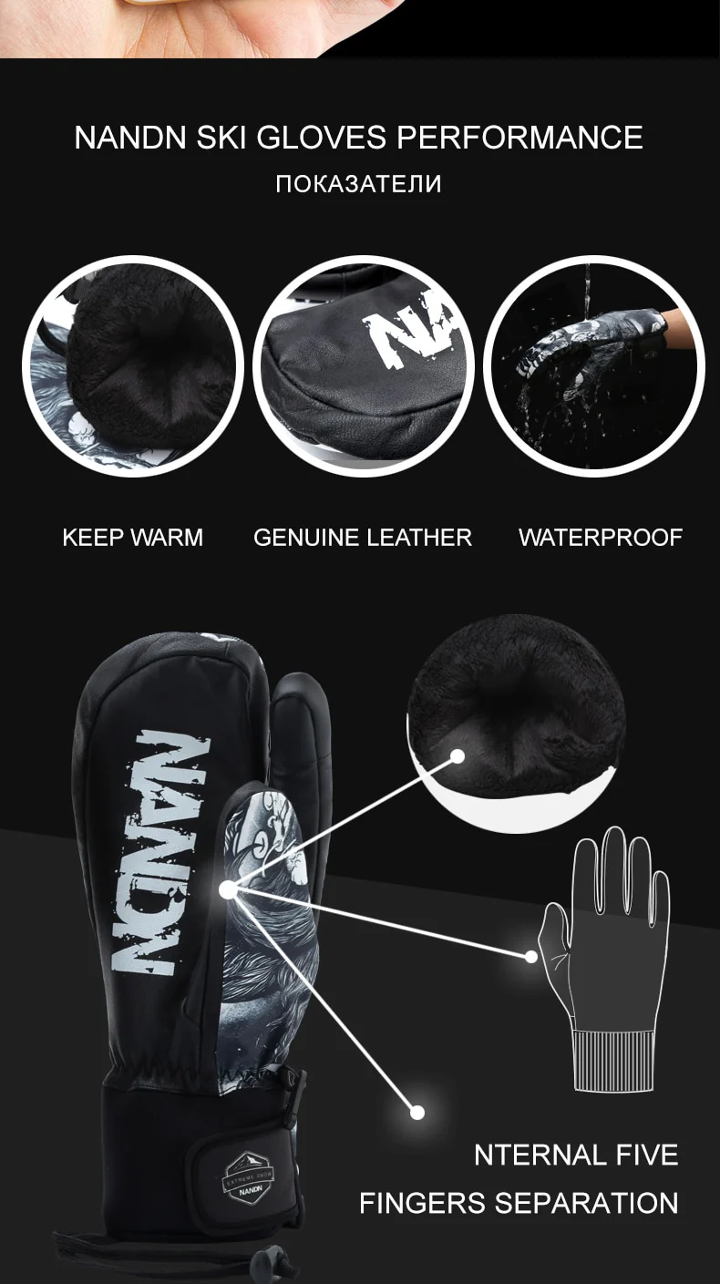 NANDN -30 Snow Mittens are a durable and cool design for women and men, which has the feature of warm, waterproof and wind-stopper. These gloves can be used by any occasion such as skiing, snowboarding, snowmobile…etc. They match you very well with their sharp look.