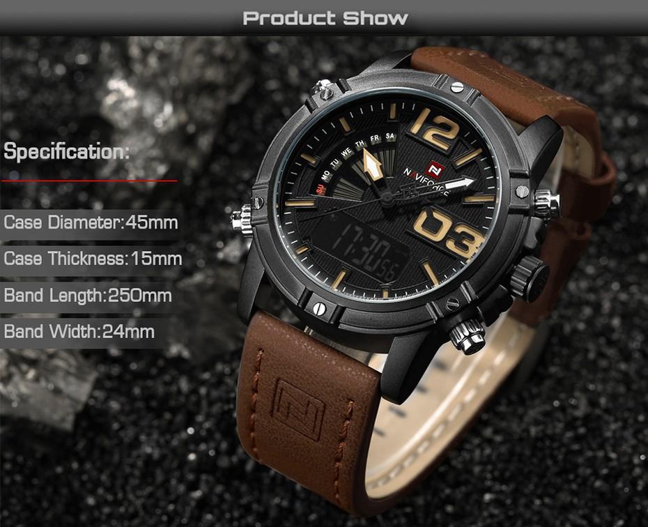 Designed for men, this NAVIFORCE Fashion Sport Watch is absolutely stunning! Made for stylish men, this watch is versatile enough for business, casual and sporty look. Made of high quality leather band and stainless-steel case, this watch is durable and comfortable to wear. It comes with a lot of great features that include a start and adjust button, a backlight, a model switch watch button, LCD display and a reset button. It also comes with a unique logo-plated crown. Perfect as a gift for yourself or for the men in your lives, grab one now! Visit our other ski stuff page to see more of these watches.