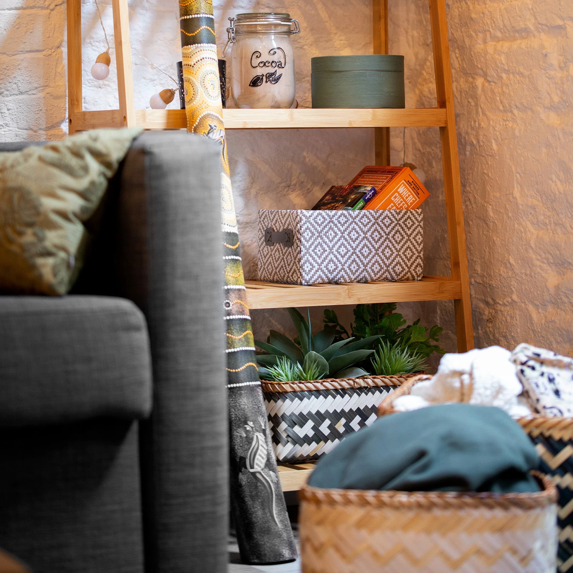 Structurez vos rangements avec style grâce à ce panier rectangulaire au motif géométrique beige et blanc. Avec ses dimensions (23,5 x 16 x H.12 cm), il trouve naturellement sa place dans la salle de bain, l’entrée ou la chambre. Rangez-y vos accessoires, produits de beauté, linge de toilette ou petits objets du quotidien. Son format compact permet de maximiser chaque recoin, tout en apportant une note élégante à votre intérieur.