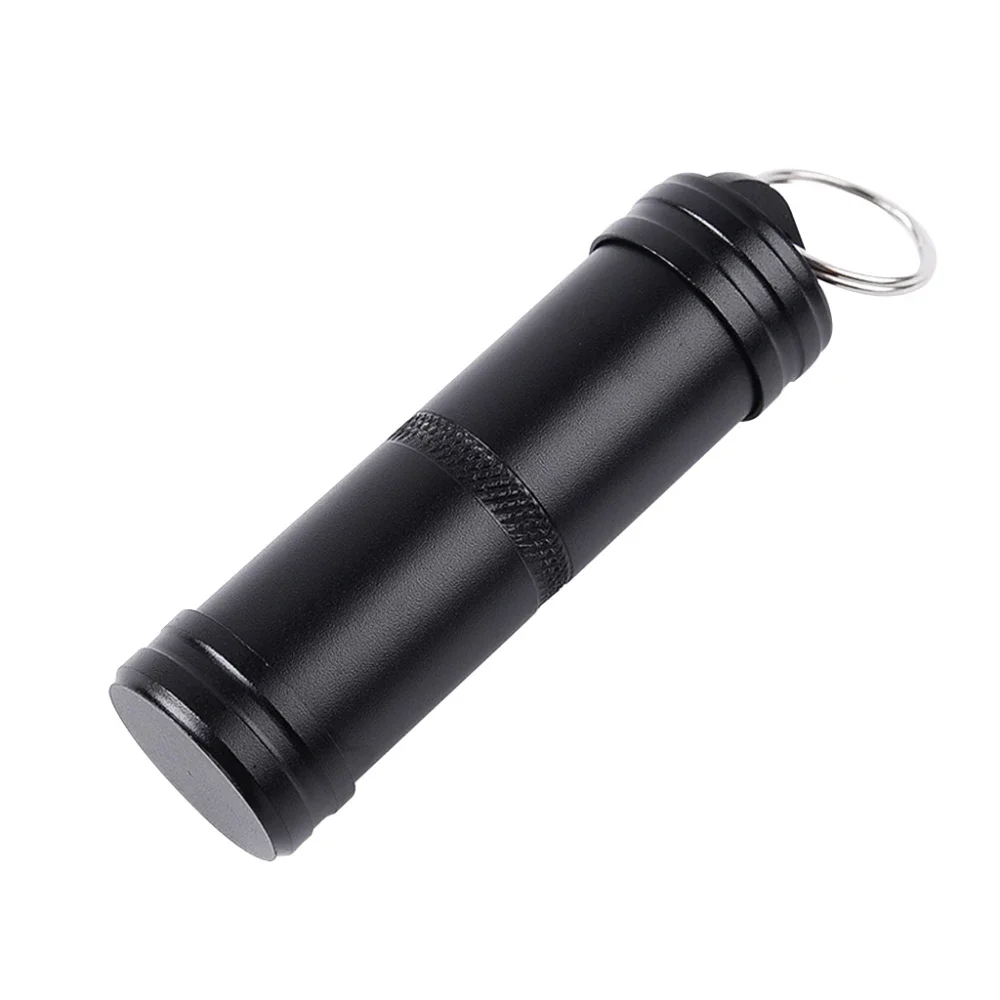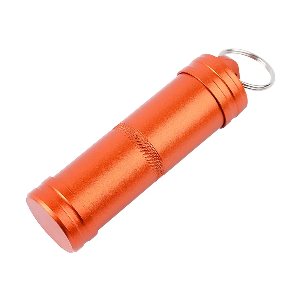The built in O-ring seal has a screw cap which ensures your pills, tablets, small flint, matches etc stay bone dry.