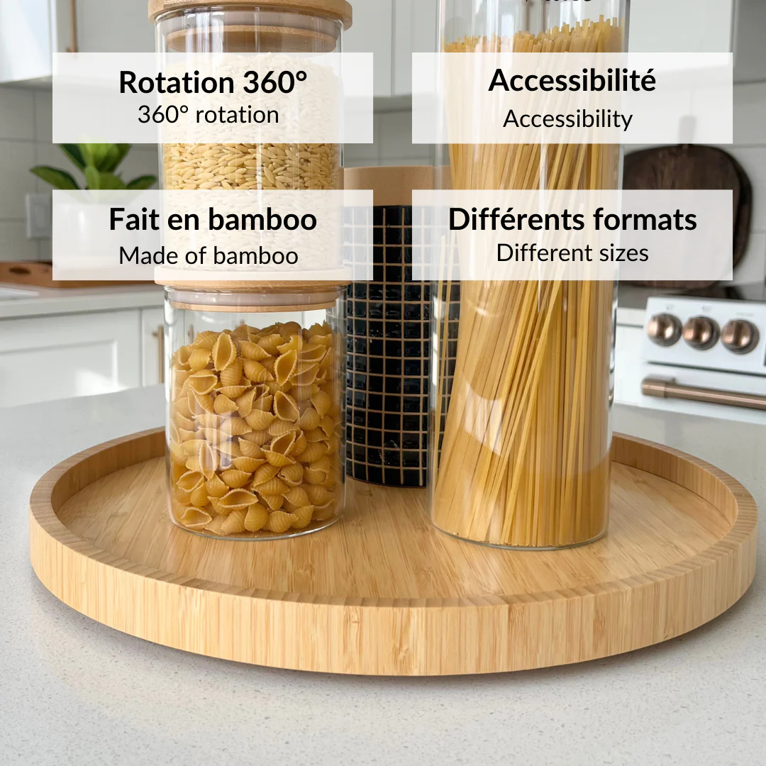 Optimisez votre espace de rangement avec Élise le plateau tournant, l’accessoire indispensable pour organiser vos armoires, comptoirs ou garde-manger. Conçu pour tourner en douceur à 360°, ce plateau permet d’accéder facilement à vos épices, condiments, produits de soins ou objets divers, même dans les endroits les plus difficiles d’accès.