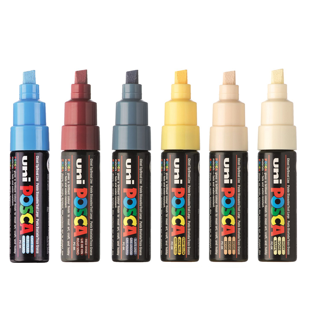 Ici sont proposés les Marqueurs à pointe large, PC-8K de 8 mm de diamètre. D’une pointe biseautée, ils sont idéals pour le tracé de contours nets et pour couvrir de grandes surfaces.