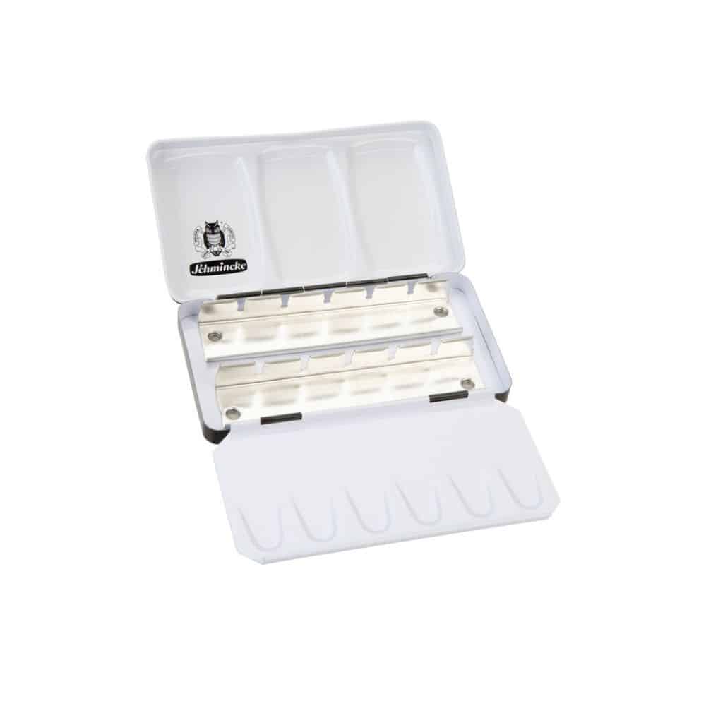 Cette boîte métallique vide est spécialement conçue pour contenir 12 demi-godets d’aquarelle, vous permettant ainsi de composer votre propre palette selon vos besoins et vos préférences.