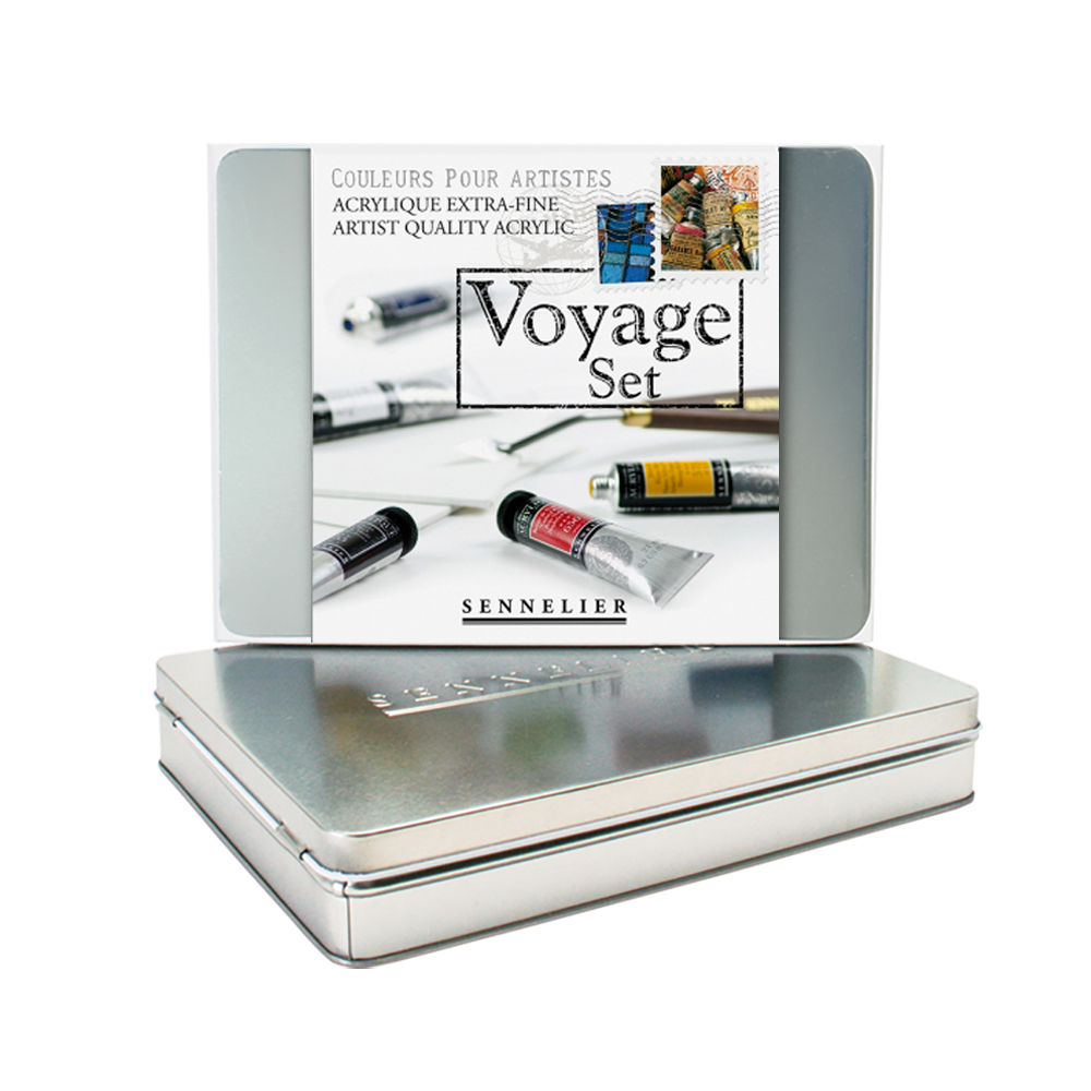 Sennelier propose le Voyage set Acrylique extra-fine parfait pour un cadeau. Ce set contient 5 tubes d’acrylique extra-fine de 21ml, 1 couteau à peindre et de 2 cartons entoilés.