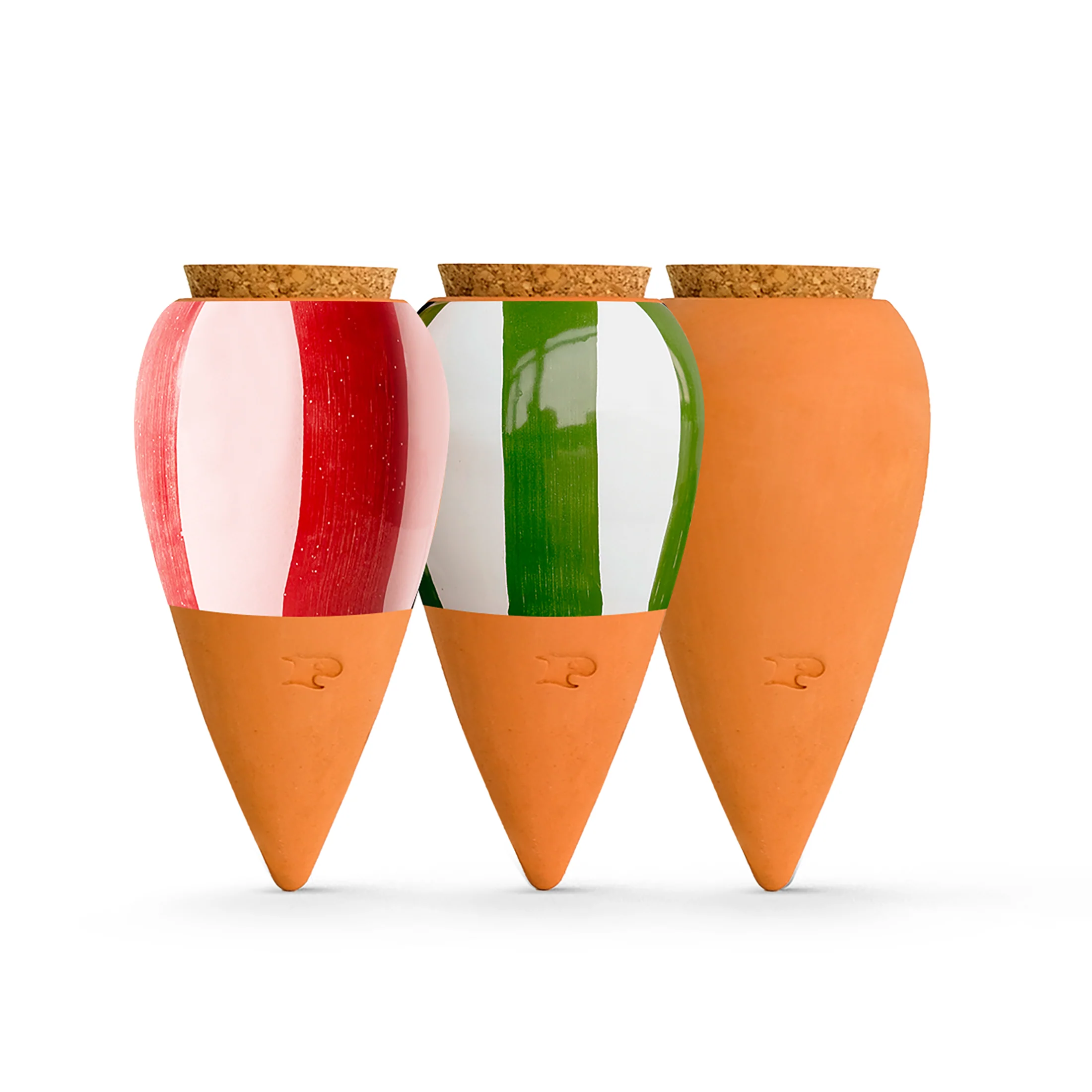 Si vous en avez marre de ne pas avoir la main verte… Les choses sont sur le point de changer grâce à notre Trio de mini-ollas par Pépin. Une Olla est un objet en argile, un matériau poreux , qui reprend les codes ancestraux du soin des plantes en apportant à vos plantes la quantité d’eau optimale, sans que vous ayez besoin de les surveiller en permanence ! Fabriquées au Portugal et livrées dans un joli coffret en carton, elles feront également un cadeau attentionné…
