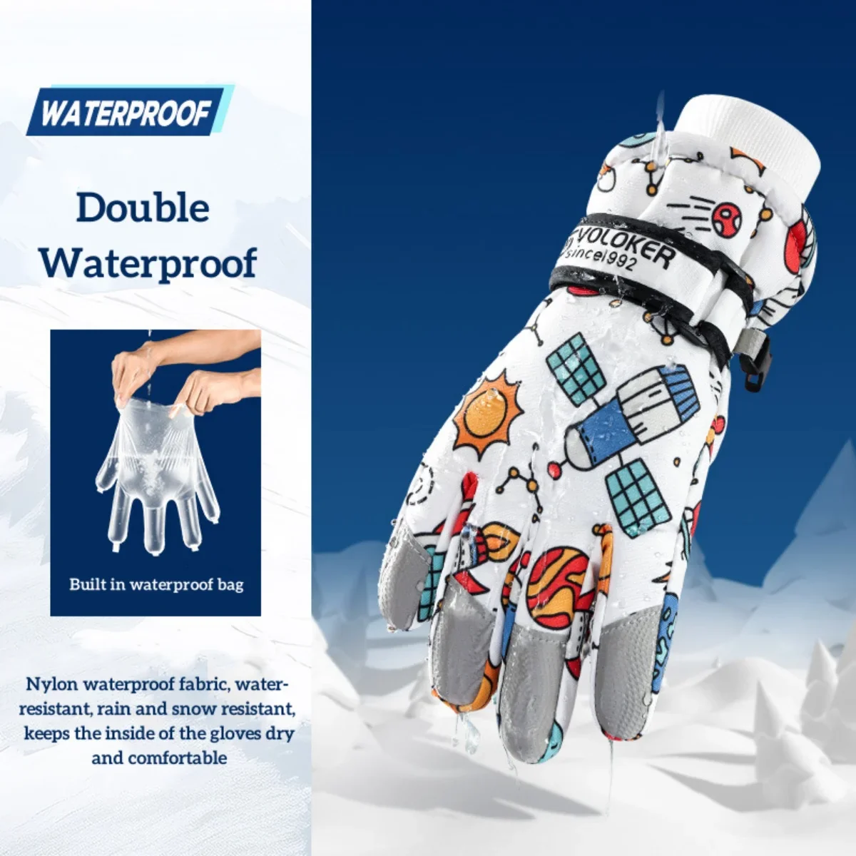 Features of the VOLOKER Ski Snowboard Cartoon Gloves for Kids