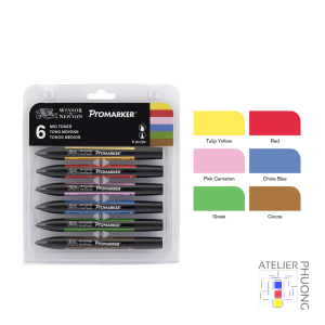 WINSOR & NEWTON – Set de 6 Promarker Ton Moyen