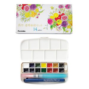 KURETAKE – Boîte de 14 demi-godets aquarelle extra-fine transparentes